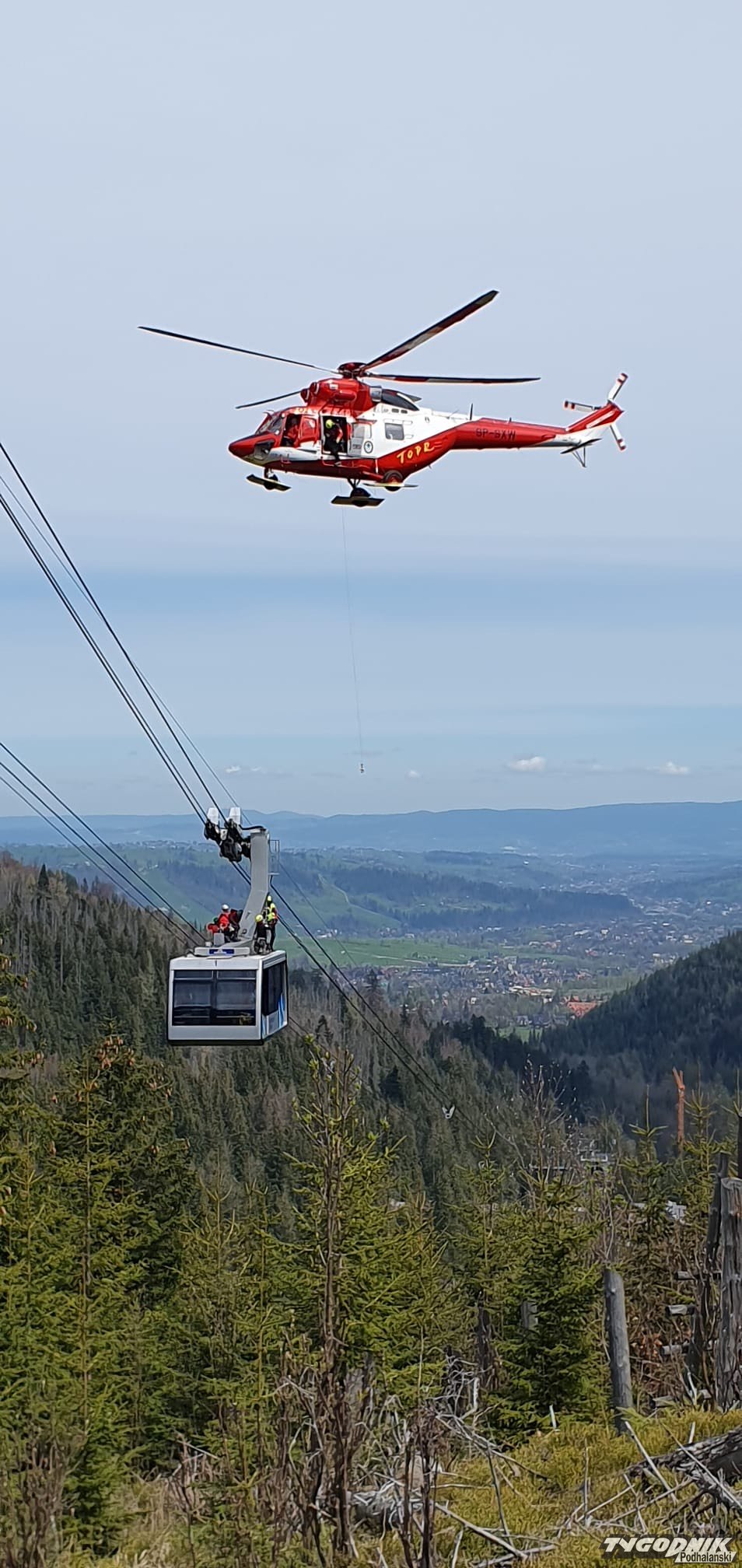Pracownicy Polskich Kolei Linowych razem z ratownikami TOPR ćwiczyli wczoraj ewakuację pasażerów z wagoników kolejki linowej na Kasprowy Wierch.