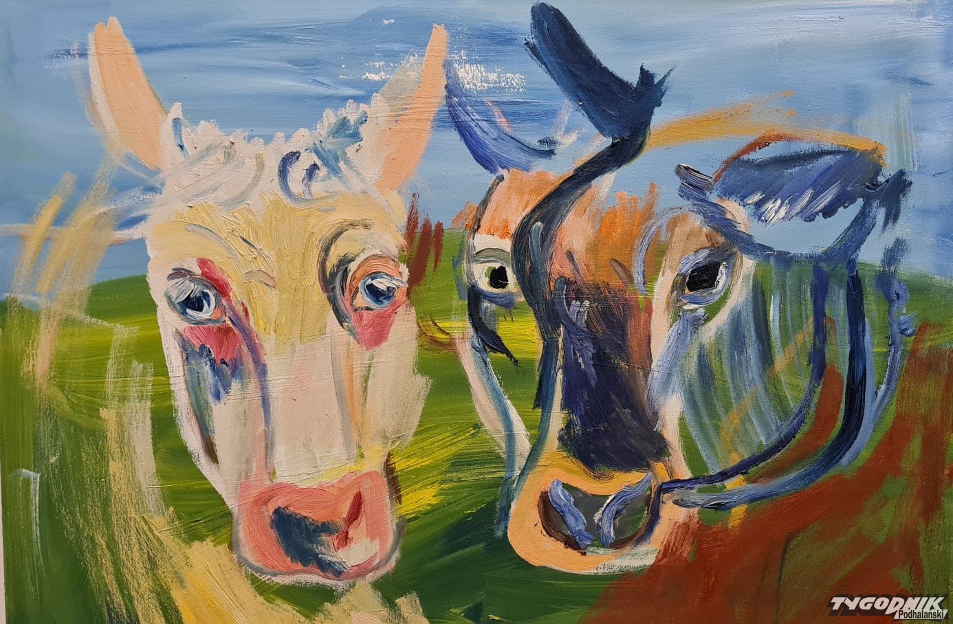 Mięsiste, intensywne obrazy Barbary Piszczór i delikatne, ulotne obrazy w brązie Joanny Borowicz. Wspólna wystawa dwóch skrajnie różnych artystek w nowotarskich Jatkach.