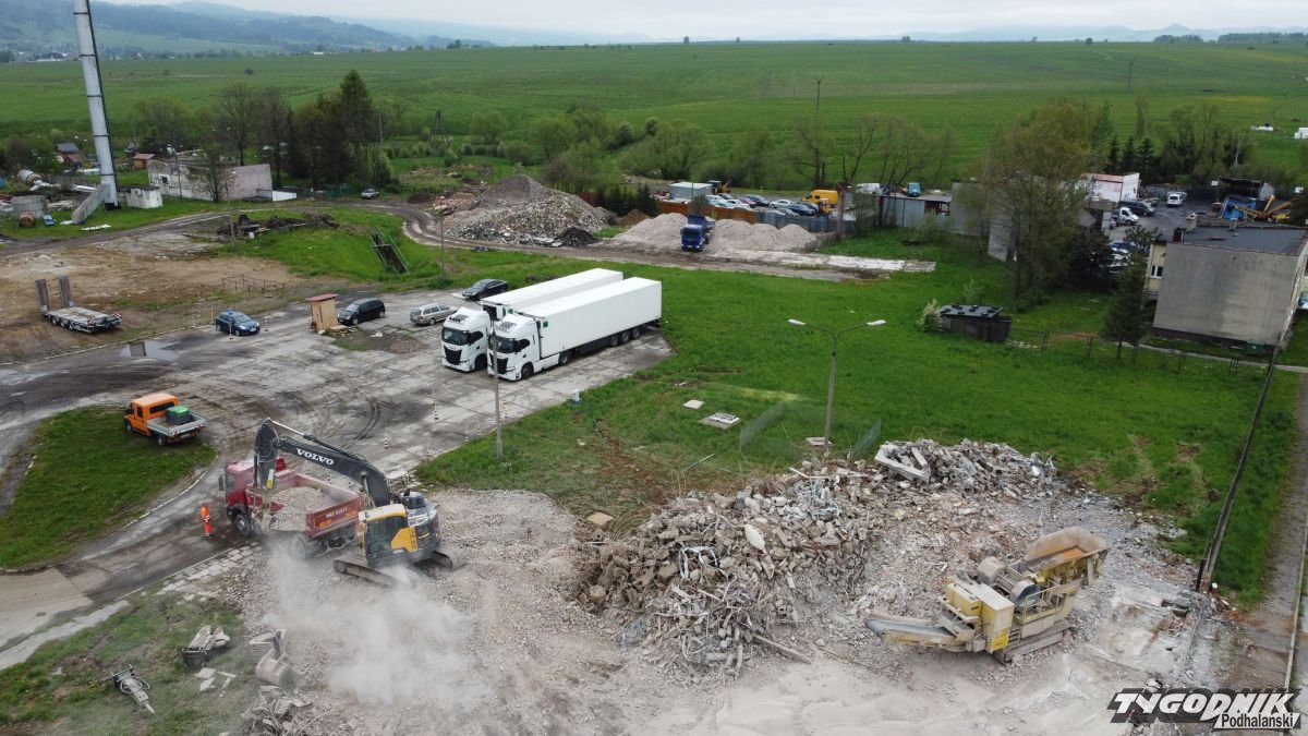 Trwa rozbiórka kolejnych budynków. Buldożery zmiotły już z powierzchni frontowy budynek ze sklepem.