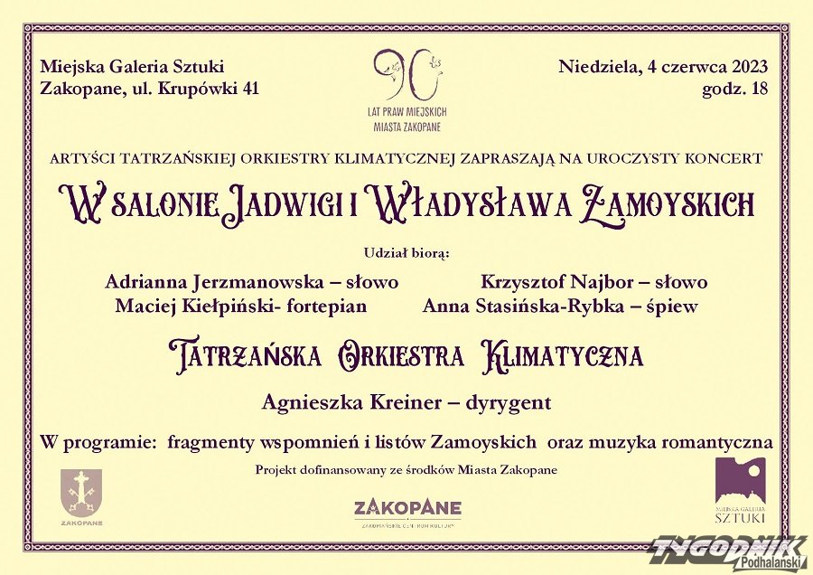A to za sprawą koncertu "W salonie Jadwigi i Władysława Zamoyskich", który odbędzie się w Miejskiej Galerii Sztuki.