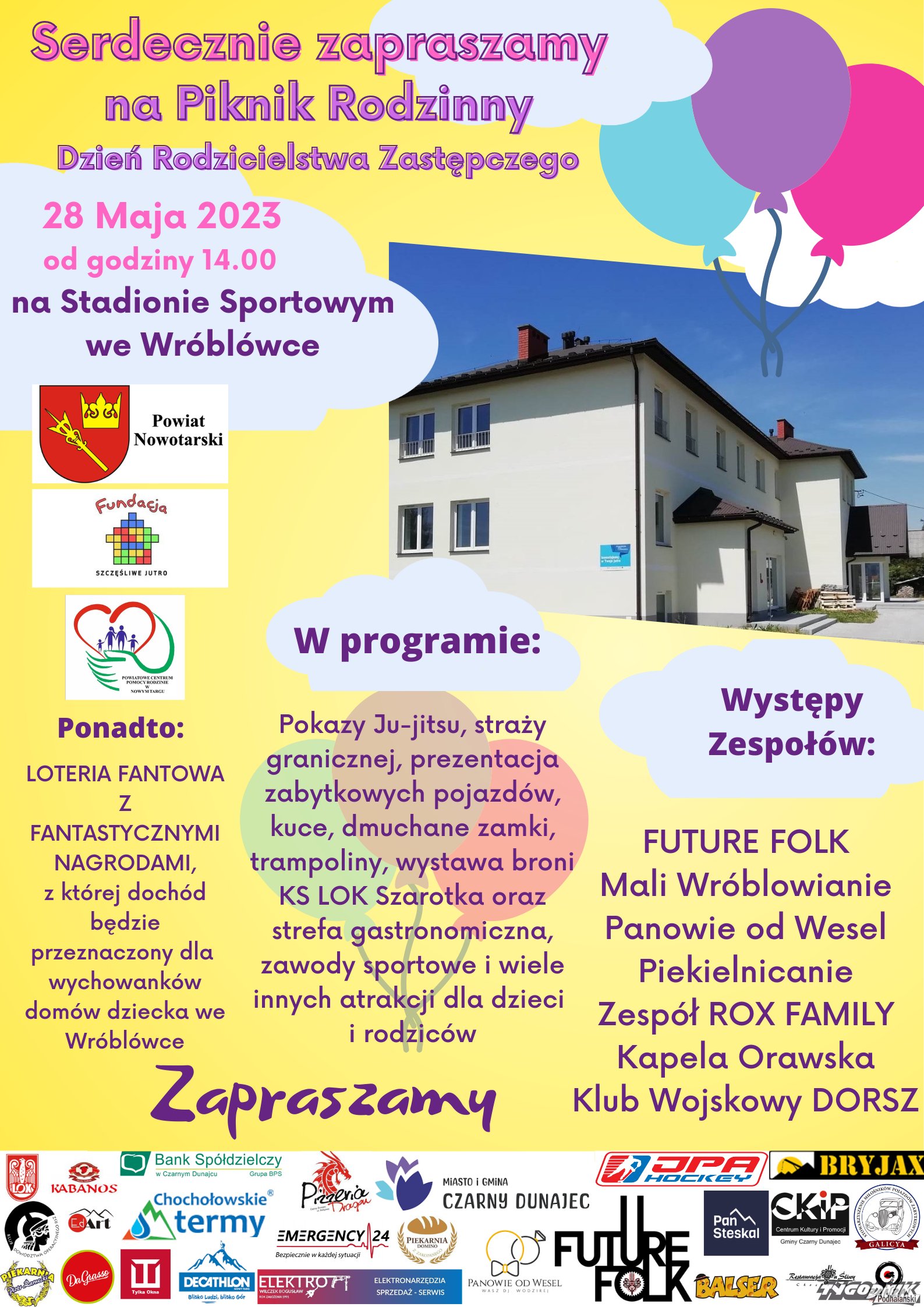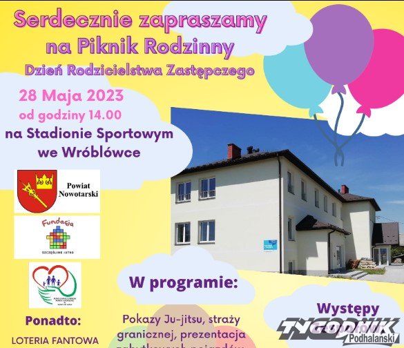Jutro (28 maja) na stadionie we Wróblówce z okazji Dnia Rodzicielstwa Zastępczego odbędzie się Piknik Rodzinny. Na dzieci z rodzin zastępczych będzie czekać moc atrakcji - m. in. pokazy Ju - jitsu, zabytkowych pojazdów. Będą kuce, dmuchane zamki, trampoliny i występy. Gwiazdą wieczoru będzie Future Folk. Będzie też loteria fantowa, z której dochód będzie przeznaczony dla wychowanków domu dziecka we Wróblówce. Osoby, które zastanawiają się, czy nie zostać rodziną zastępczą, będą miały okazję, by dowiedzieć się czegoś na temat jej funkcjonowania, przepisów, a także dowiedzieć się o doświadczeniach innych.