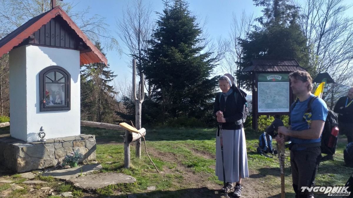 Dalej, doliną Kamienicy zmierzamy na przełęcz Borek. O dwunastej tę przełęcz zdobywamy i tu modlitwa południowa. Przed Ołtarz Papieski na Polanie Filasowej docieramy o 13.00. Tu ostatni dziesiątek różańca. Na obiad czyli tradycyjną kwaśnicę udajemy się do schroniska na Turbaczu. Przy okazji mała czarna. Czas szybko biegnie. Tuż przed 14.00 opuszczamy Turbacz i kierujemy się do Kowańca. Po drodze na Rusnakowej Polanie przy kaplicy koronka do Miłosierdzia Bożego. Po modlitwie schodzimy do Nowego Targu. Chociaż jest z górki zmęczenie daje o sobie znać ale każdy mówi damy radę i to jest ten cenny dar. Wytrwanie!!