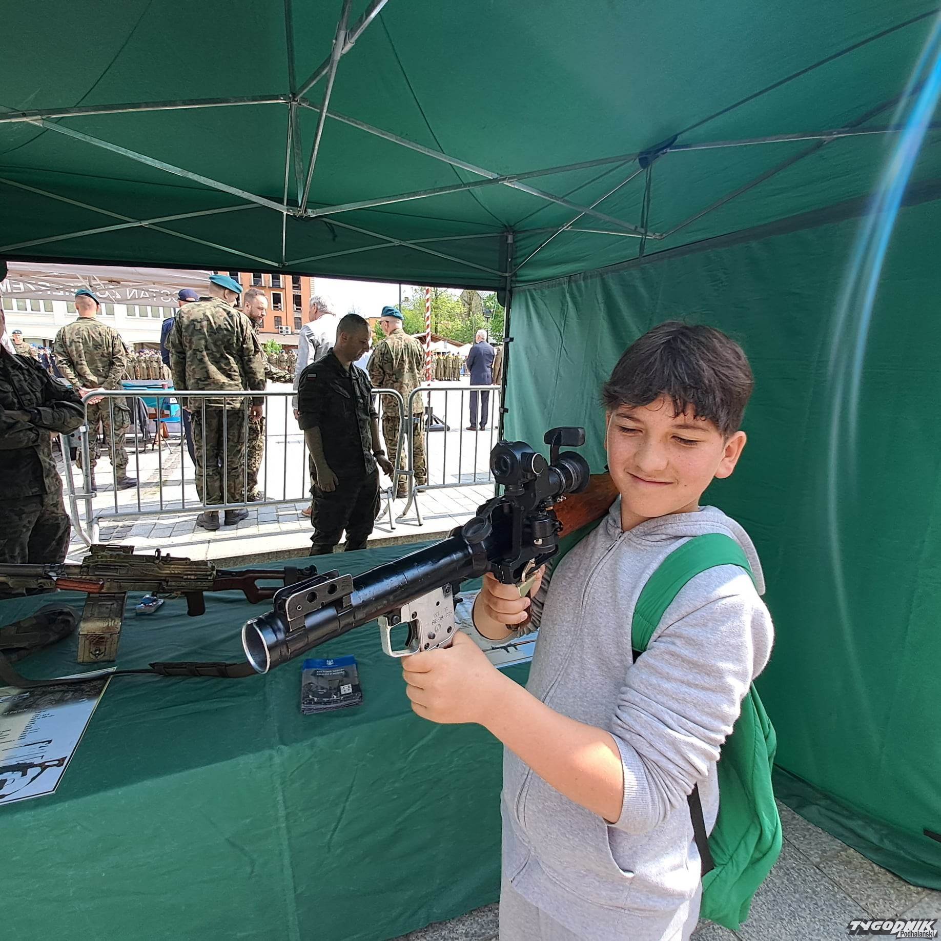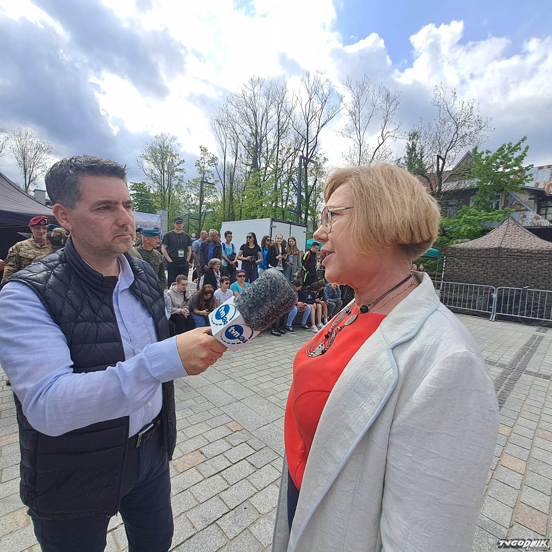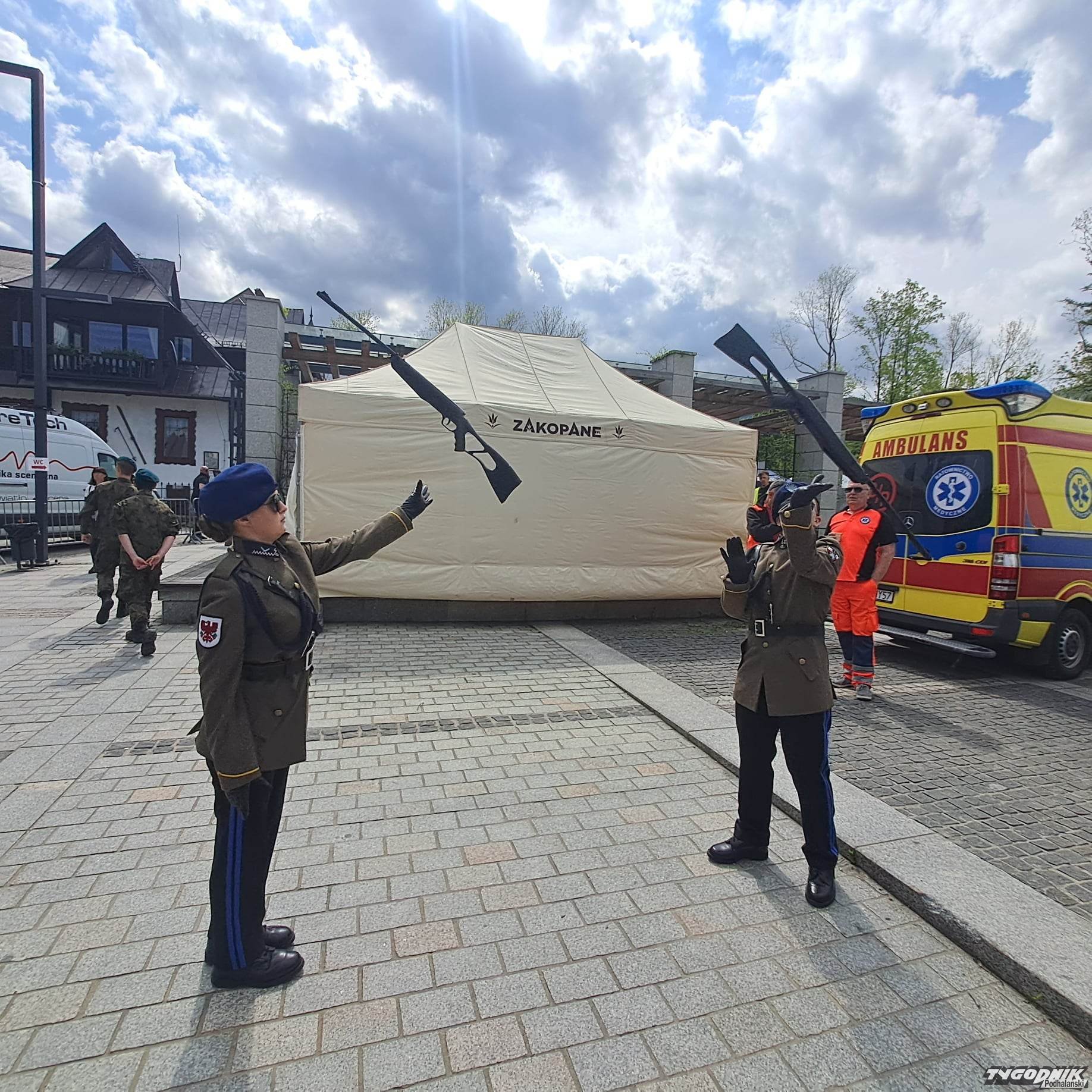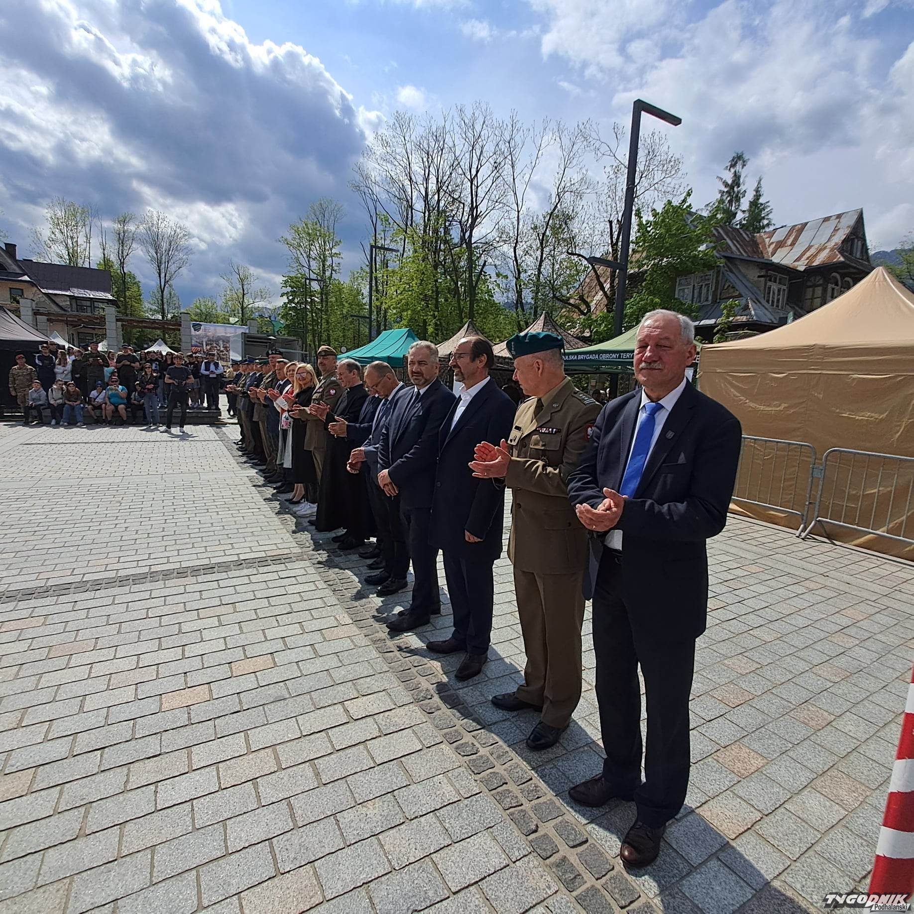 Na Placu Niepodległości uczniowie z mundurowych klas prezentują się z jak najlepszej strony. Defilują, śpiewają żołnierskie pieśni. Oglądają ich różne vipy. Dojechała Małopolska Kurator Oświaty Barbara Nowak, są władze samorządowe.