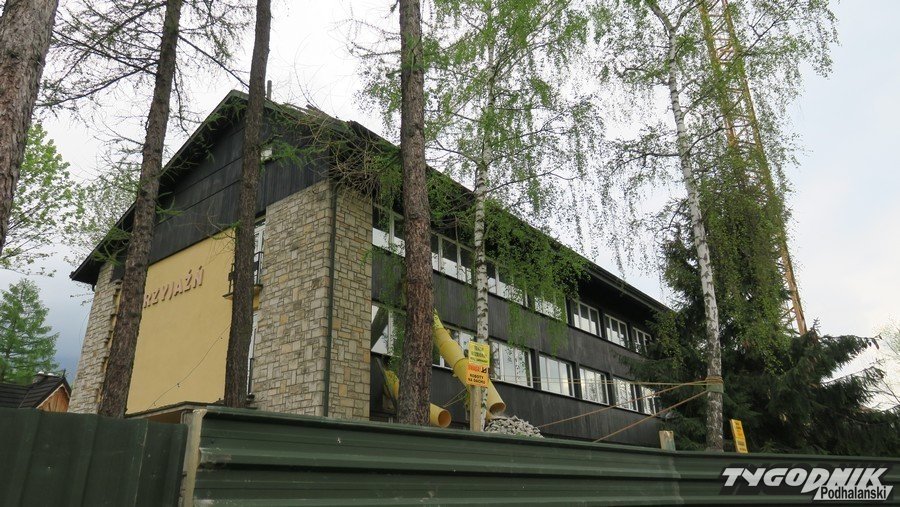 A dokładnie przebudowa, nadbudowa i rozbudowa. Na miejscu stoi już potężny dźwig, a cały teren ogrodzony solidnym, blaszanym płotem. Hotel zostanie rozbudowany i zmodernizowany. Jak czytamy na tablicy informacyjnej, ruszyła "Przebudowa, nadbudowa i rozbudowa budynku hotelu wraz z infrastrukturą zewnętrzną". Inwestorem jest AMW Rewita, a prace prowadzi przedsiębiorstwo "Cechini" z Krynicy-Zdroju.