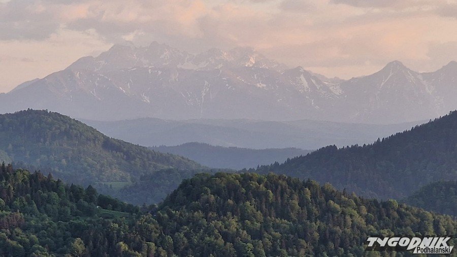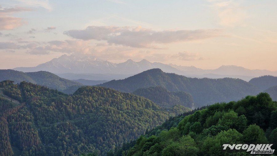 Pieniny jak na dłoni. Tatry za lekką chmurką.