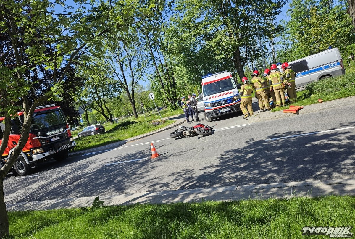 Na Alejach 3 Maja w Zakopanem doszło do zderzenia motocyklisty z samochodem osobowym.