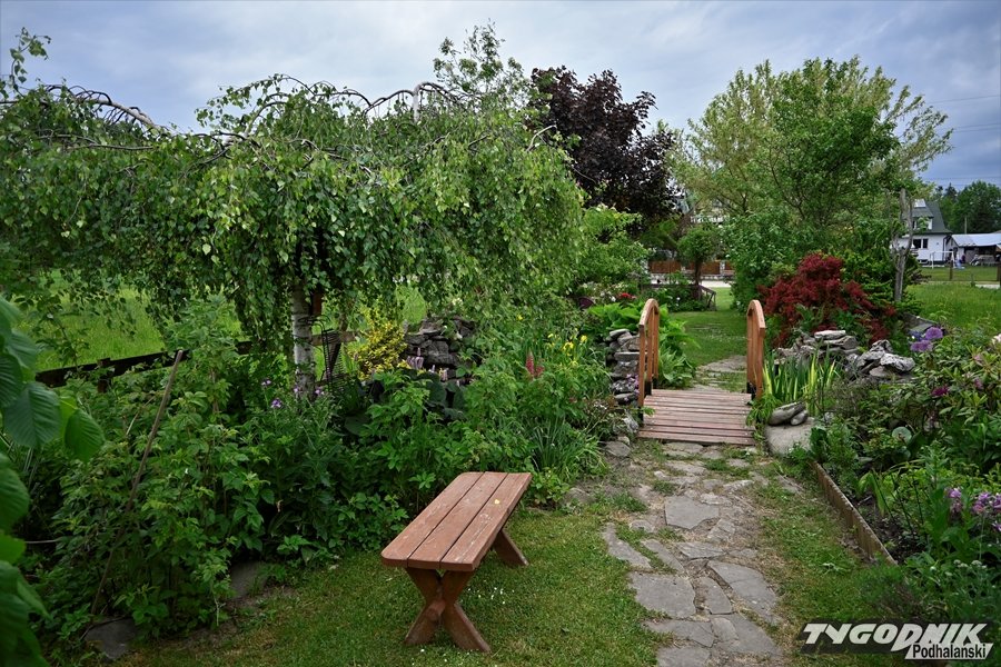 Fenomen tego ogrodu polega też na tym, że na wąskiej, mierzącej niecałe 8 arów działce tak rozmieszczono kwiaty, drzewa i krzewy, że całość wydaje się być znacznie większa. A w tych kuszących, zielonych wnętrzach znalazło się też miejsce na oczko wodne, miniwodospad, drewnianą kładkę, miejsce zabaw dla wnuków i kącik dla całej rodziny.