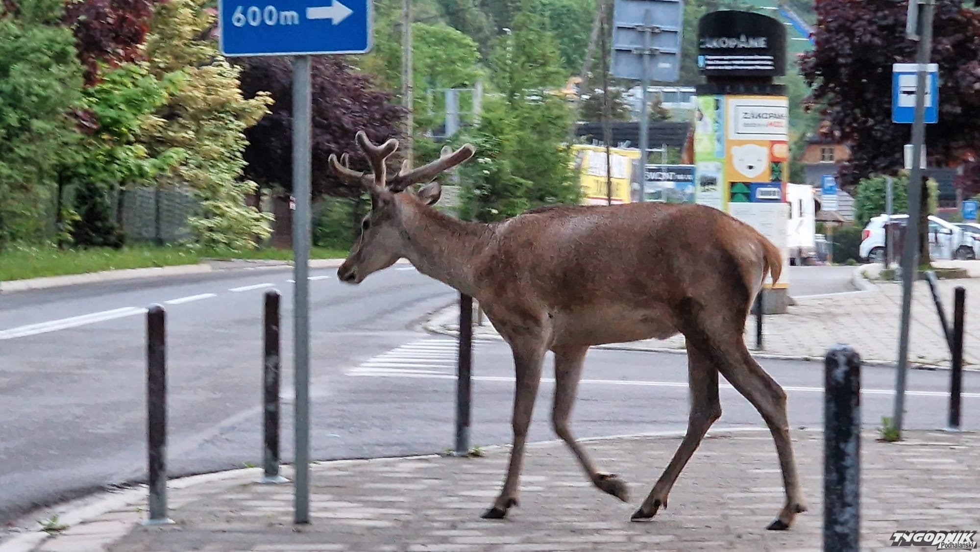 Zobaczcie jak młody jeleń przechodzi prawidłowo po pasach. Szkoda, że swoimi śmieciami to my przyciągamy zwierzęta z lasu.