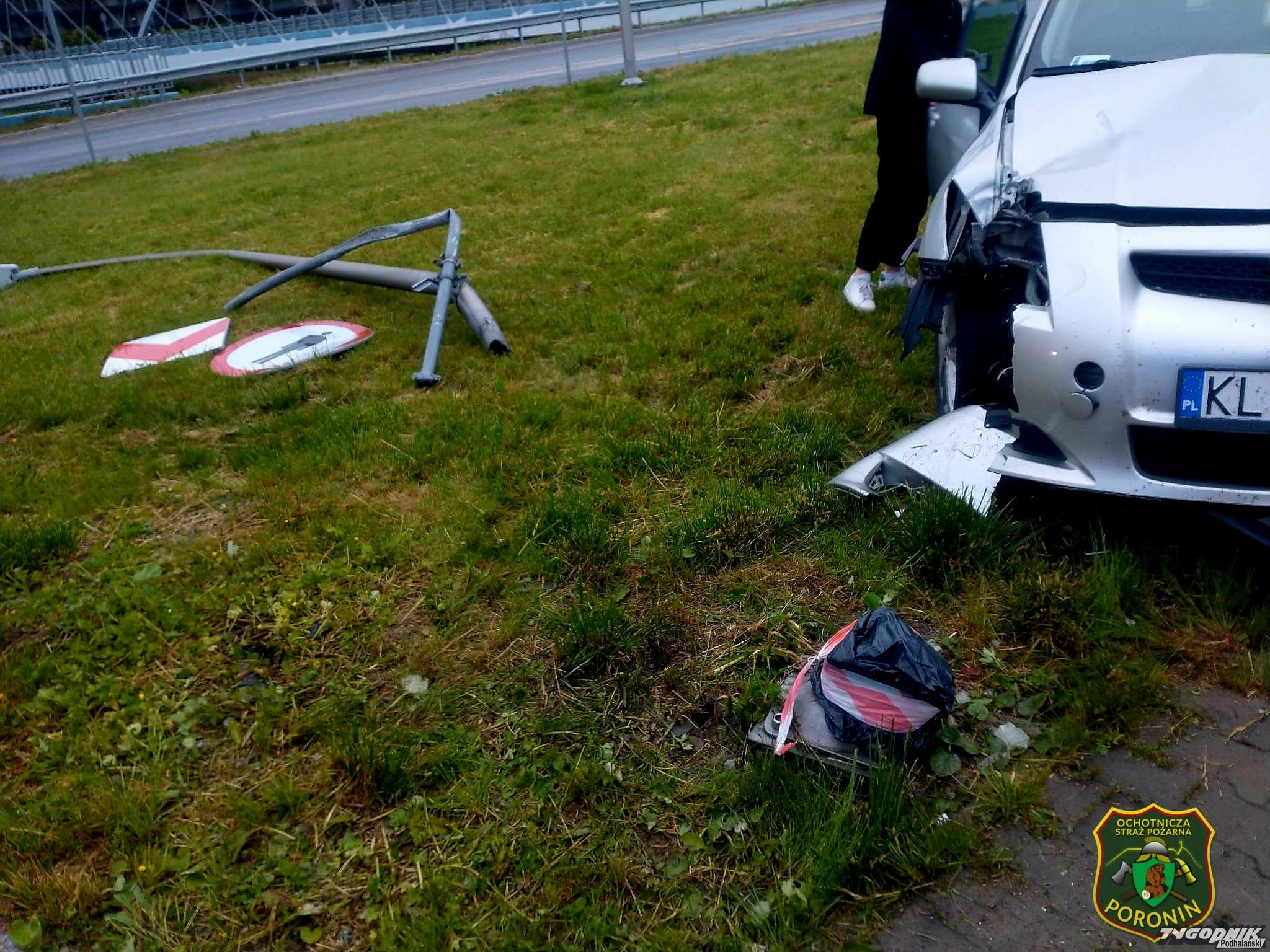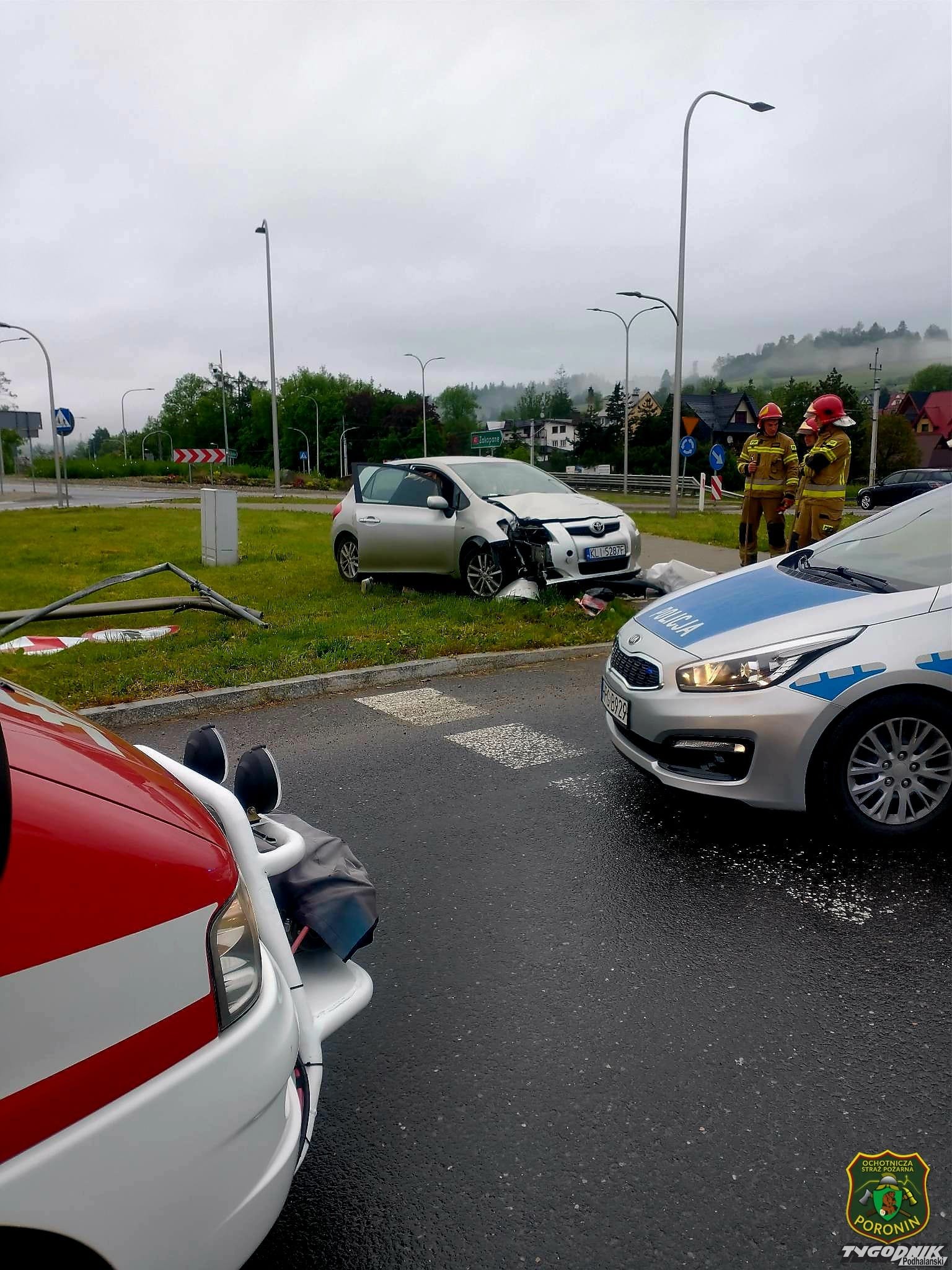 W czasie pokonywania węzła drogowego w Poroninie kobieta straciła panowanie nad kierownicą.