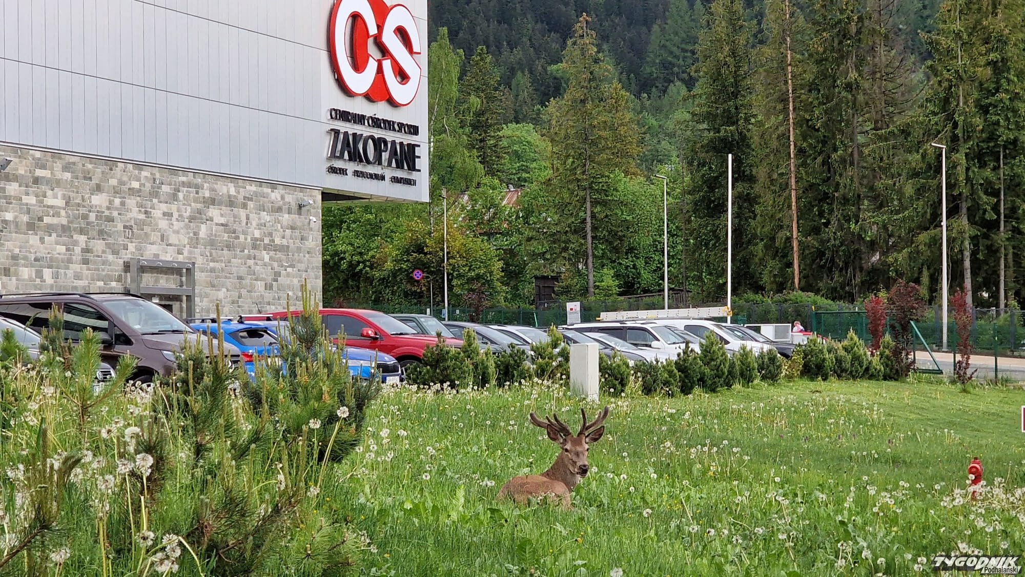 Na parkingu przed Centralnym Ośrodkiem Sportu w Zakopanem pojawił się młody jeleń.