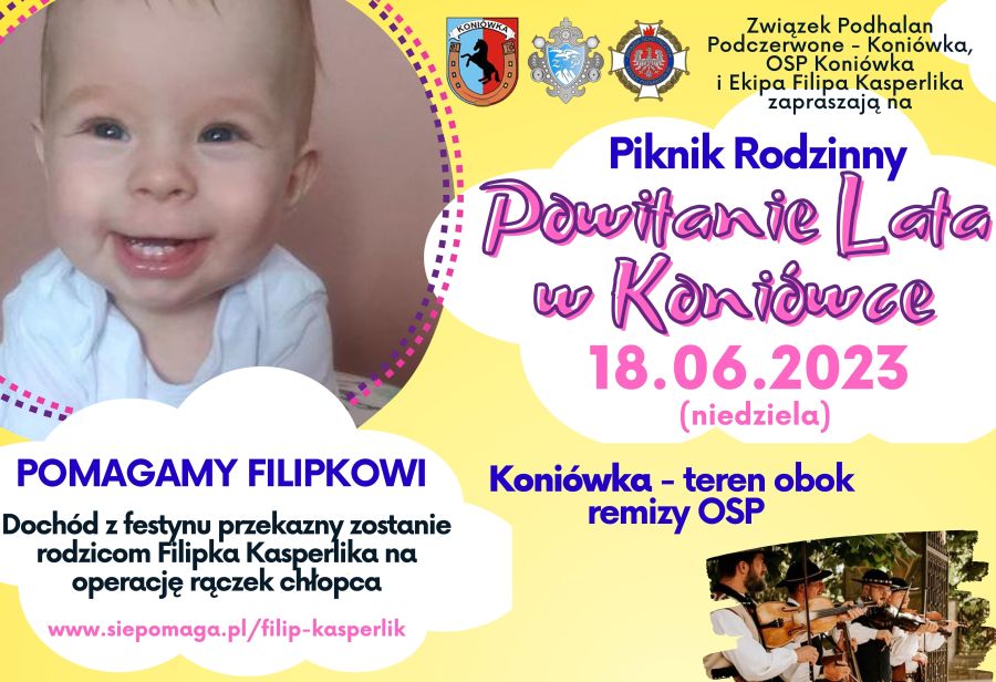 Na Piknik Rodzinny "Powitanie Lata" w niedzielę 18.06 zapraszają wspólnie Oddział ZP Podczerwone-Koniówka, OSP Koniówka i Ekipa Filipa Kasperlika. Zabawa odbędzie się na terenie obok remizy OSP.