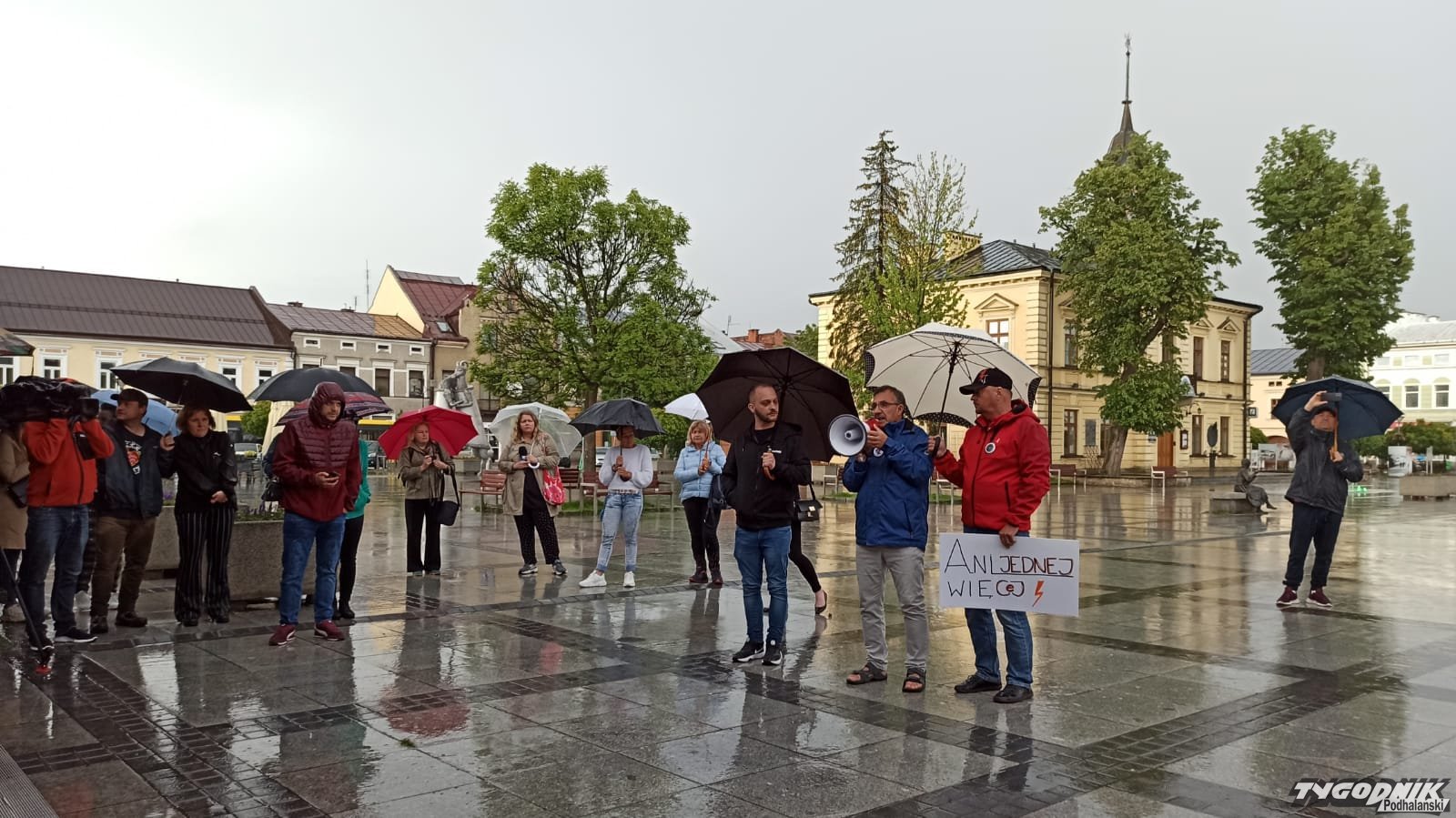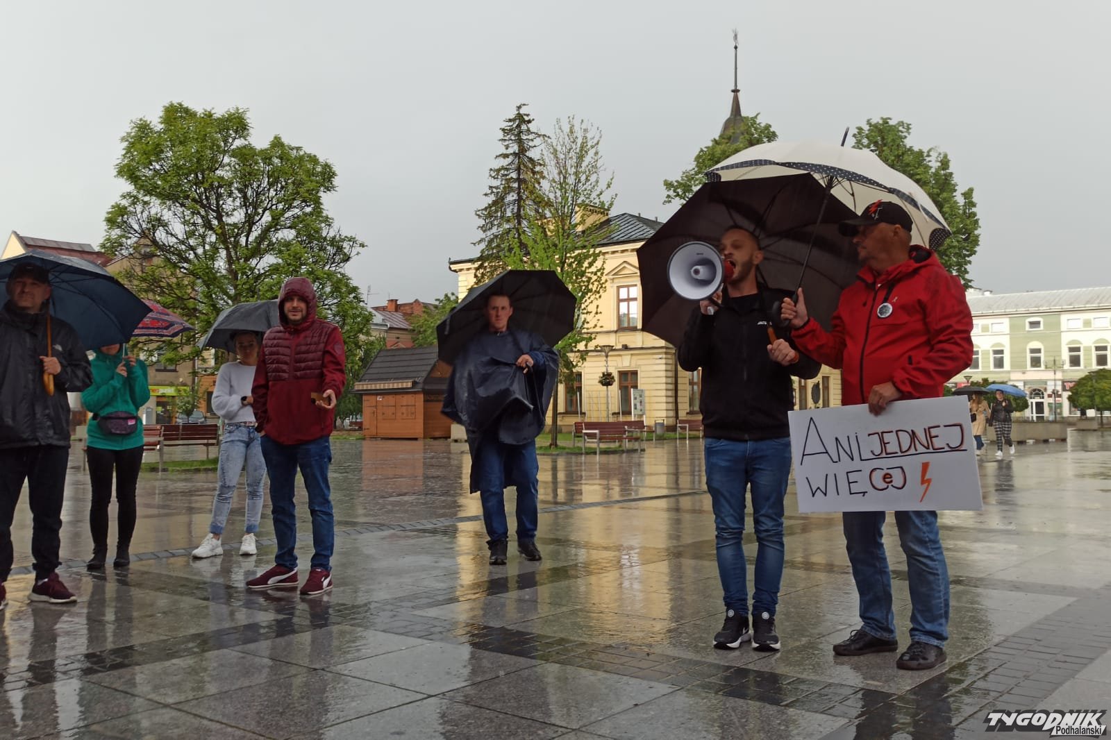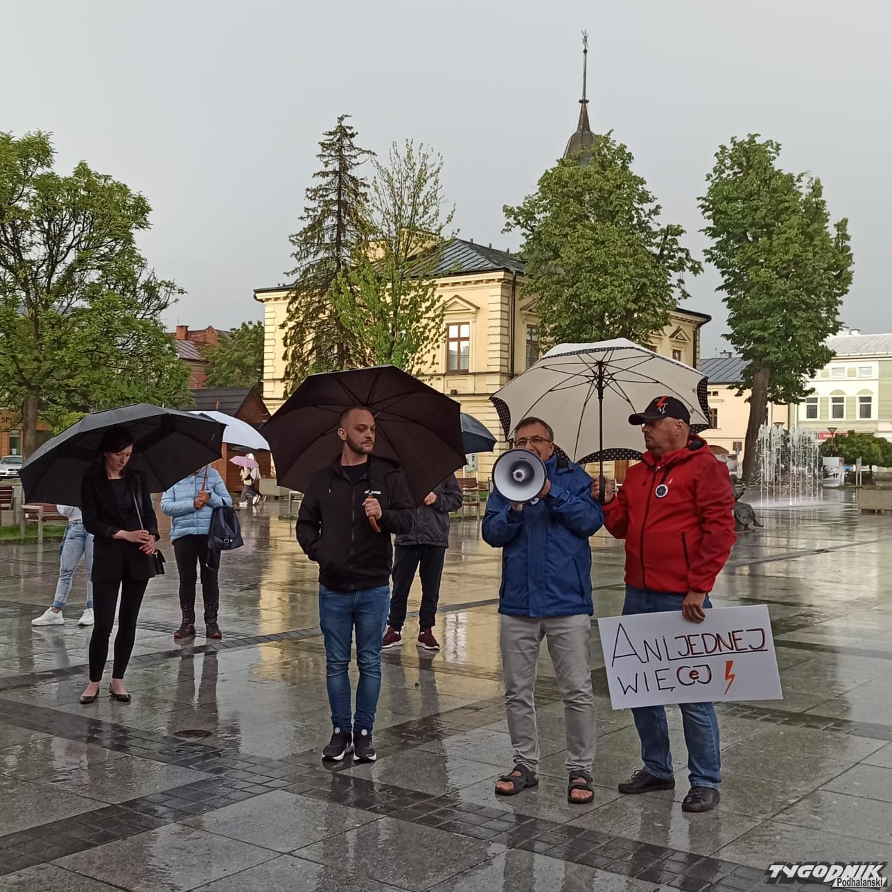 O godz. 18 na nowotarski rynku rozpoczął się protest po śmierci 33-letniej Doroty, która będąc w zaawansowanej ciąży trafiła do nowotarskiego szpitala, gdzie trzy dni później zmarła. Mimo lejącego deszczu w demonstracji bierze kilkadziesiąt osób. Zebrani skandują: "Ani jednej więcej". Rozmawiamy m. in. z matką zmarłej kobiety.