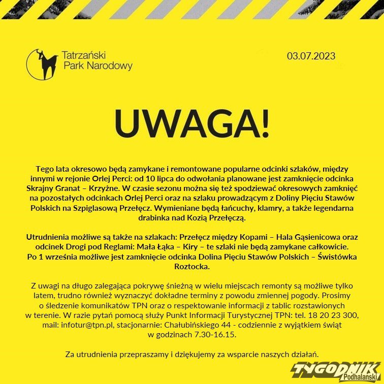 Tatrzański Park Narodowy rozpoczyna letnie remonty szlaków.