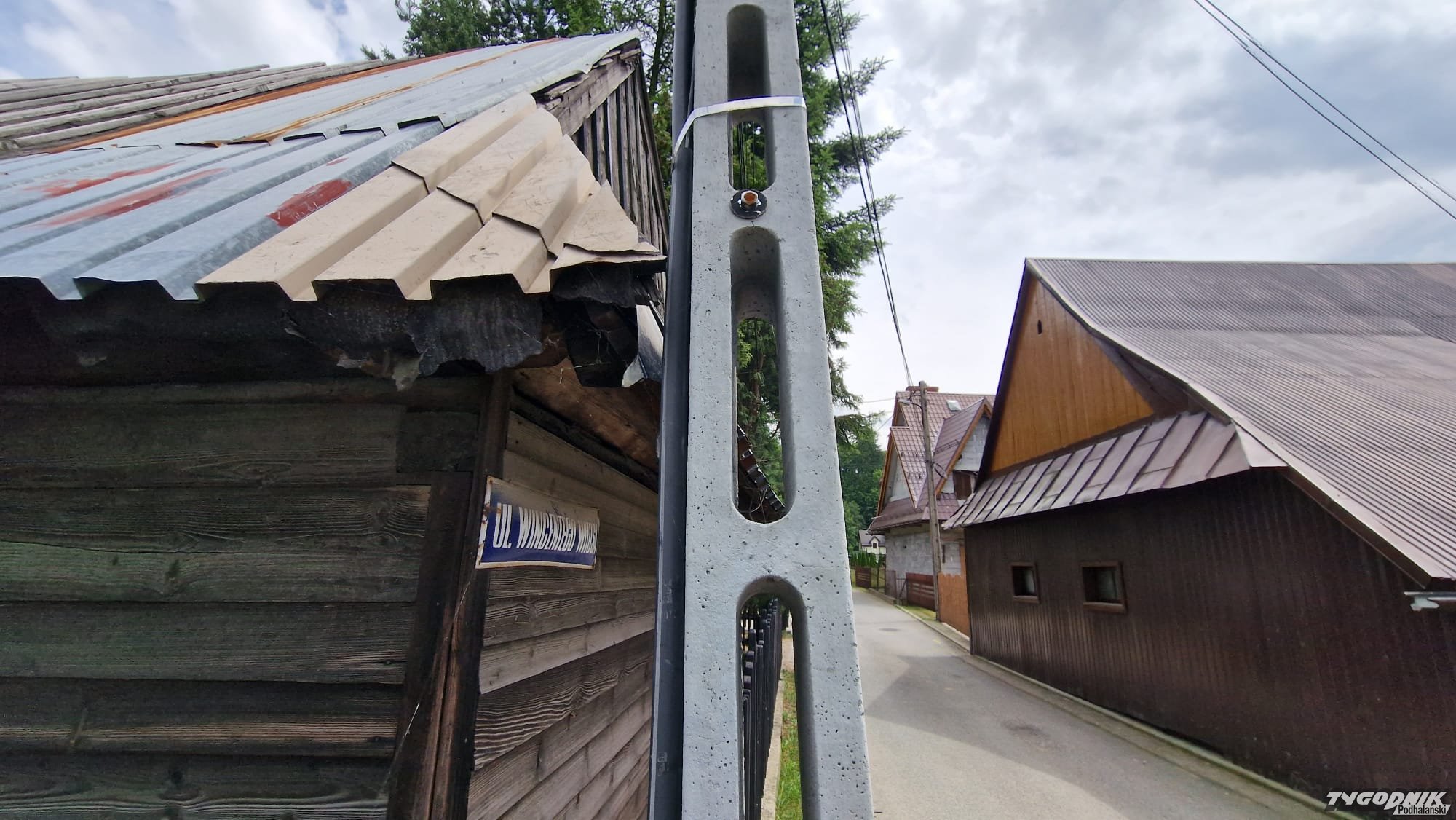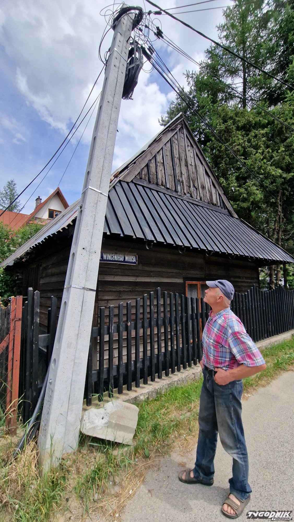 Słup wali się na dom, przewody wiszą nad jezdnią. Taka fuszerka w Białym Dunajcu (WIDEO)