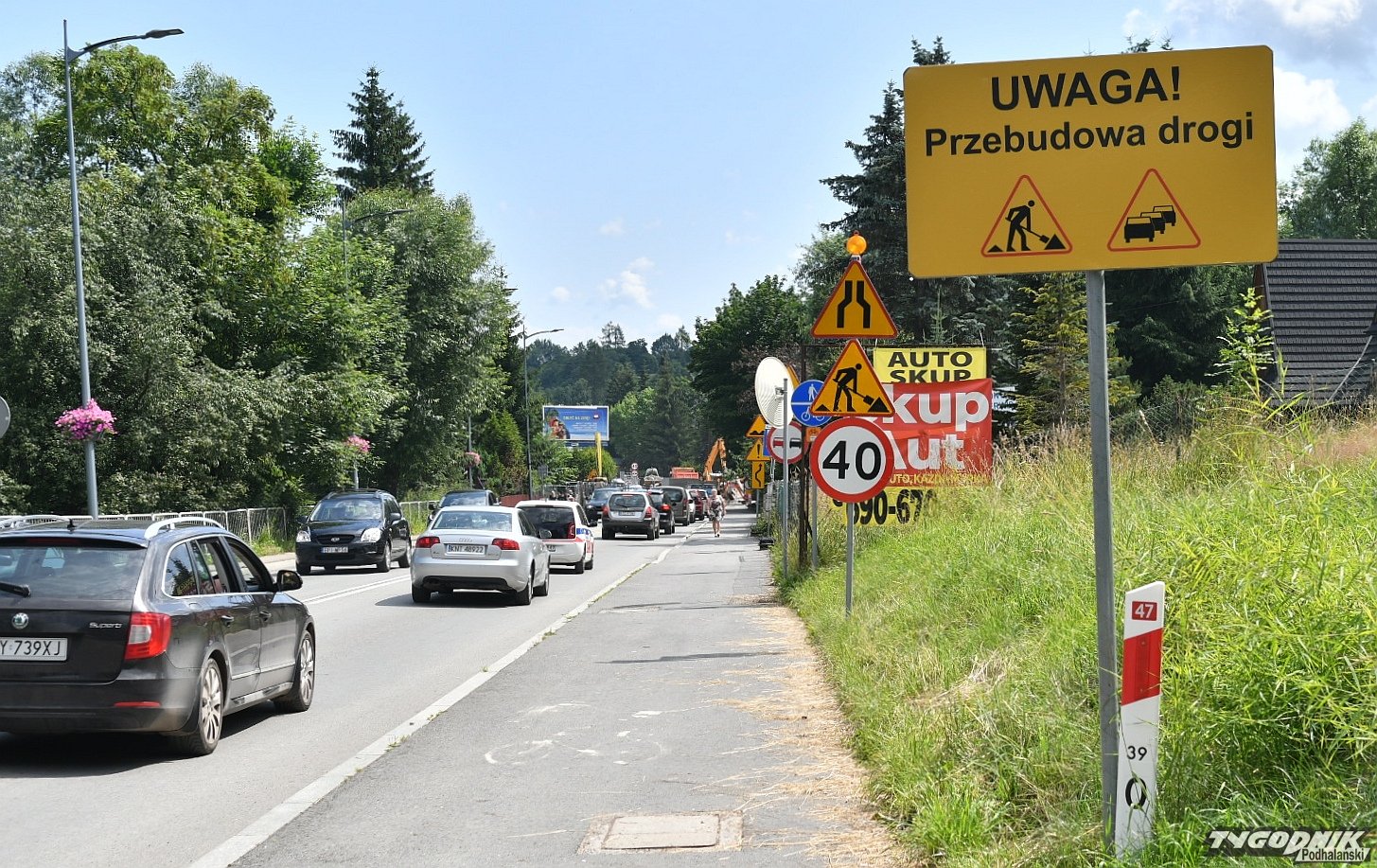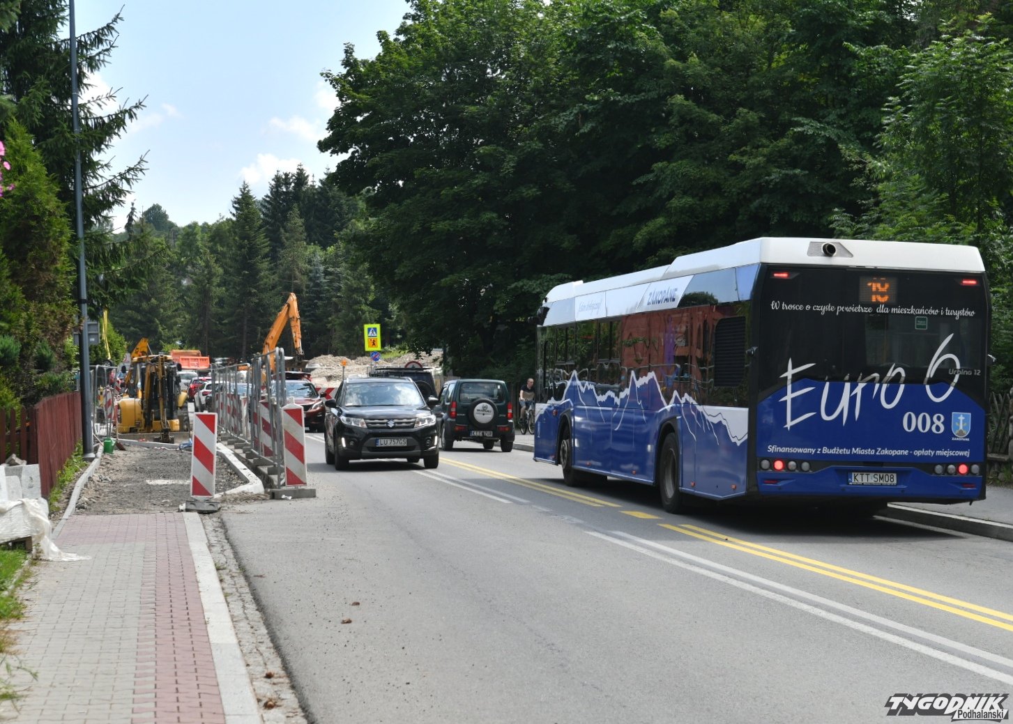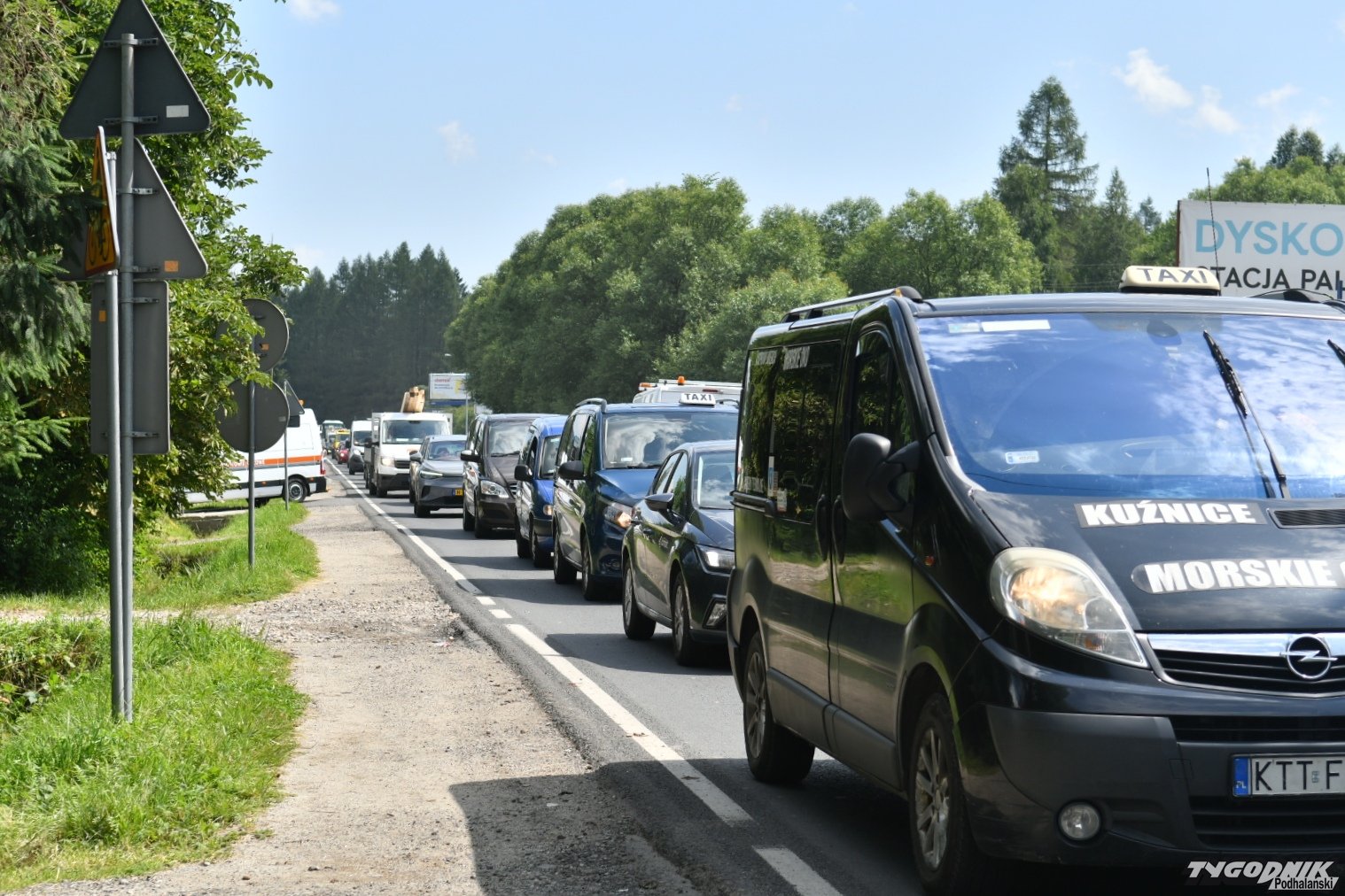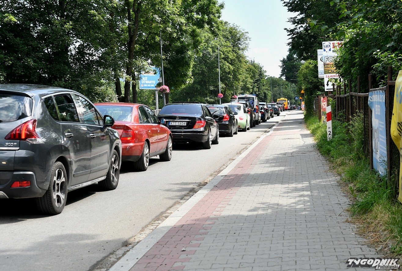 Piesi chodzący między autami, przeciskający się tuż przy płocie, złe oznakowanie, dwa autobusy, które nie mogą się minąć i wielkie korki - tak w środku sezonu wygląda wyjazd z Zakopanego od strony ul. Kasprowicza.