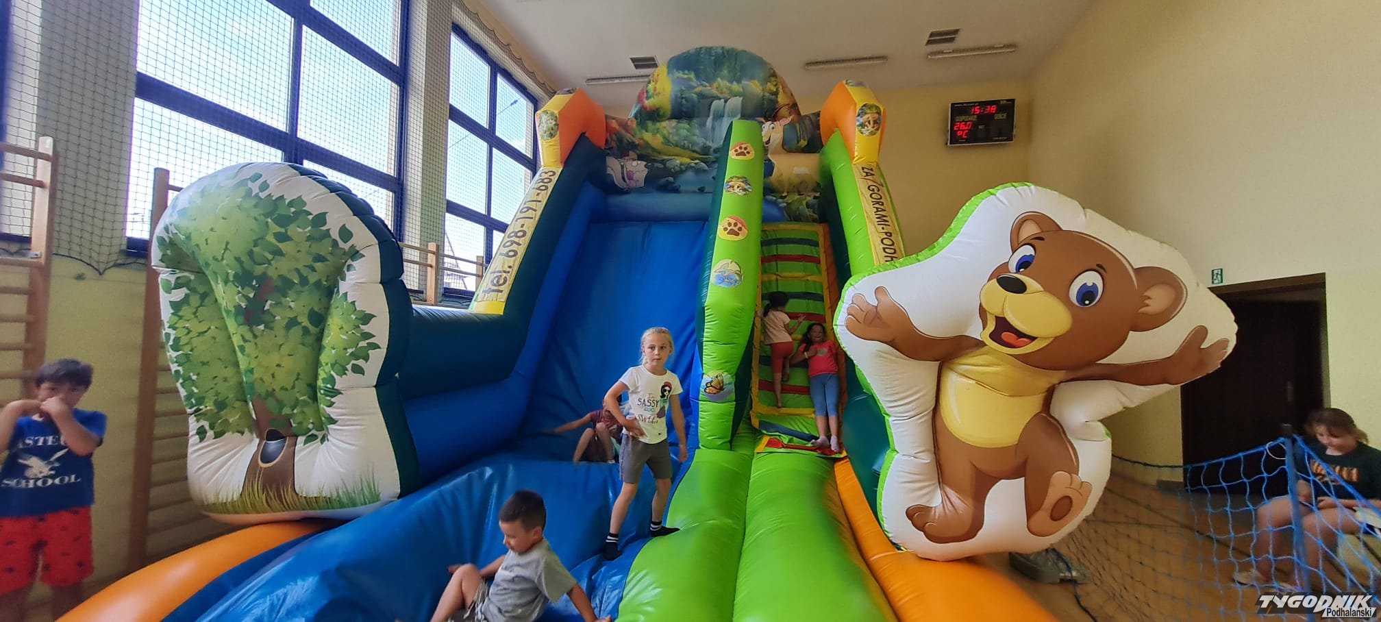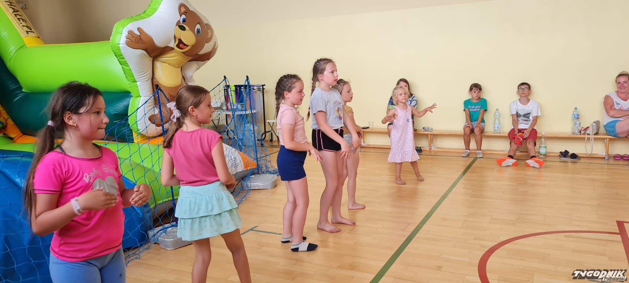Chwilowy deszcz przepędził dzieci z placu do sali gimnastycznej, ale i tam dużo się działo. - Dla mnie najfajniejsza była zjeżdżalnia - opowiada Krzysiek. - Pograłem w piłkę. Proszę też napisać, że pani Sylwia jest super - podkreśla jedenastolatek,. - Tak naprawdę dostosowujemy zajęcia do tego, co chcą dzieci - podkreśla Paulina Kwak, która ze swoją ekipą organizuje zajęcia w poszczególnych miejscowościach gminy. W tym tygodniu przez trzy dni z atrakcji korzystają dzieci w Borze. Duży powodzeniem cieszą się dmuchańce. - Dziś były zabawy z chustką, gra w piłkę, tańce disco - wymienia pani Paulina. Podkreśla, że przemyca też różne treści wychowawcze. - Rozmawialiśmy o uważności - o uważnym jedzeniu, słuchaniu, wąchaniu - wymienia.
