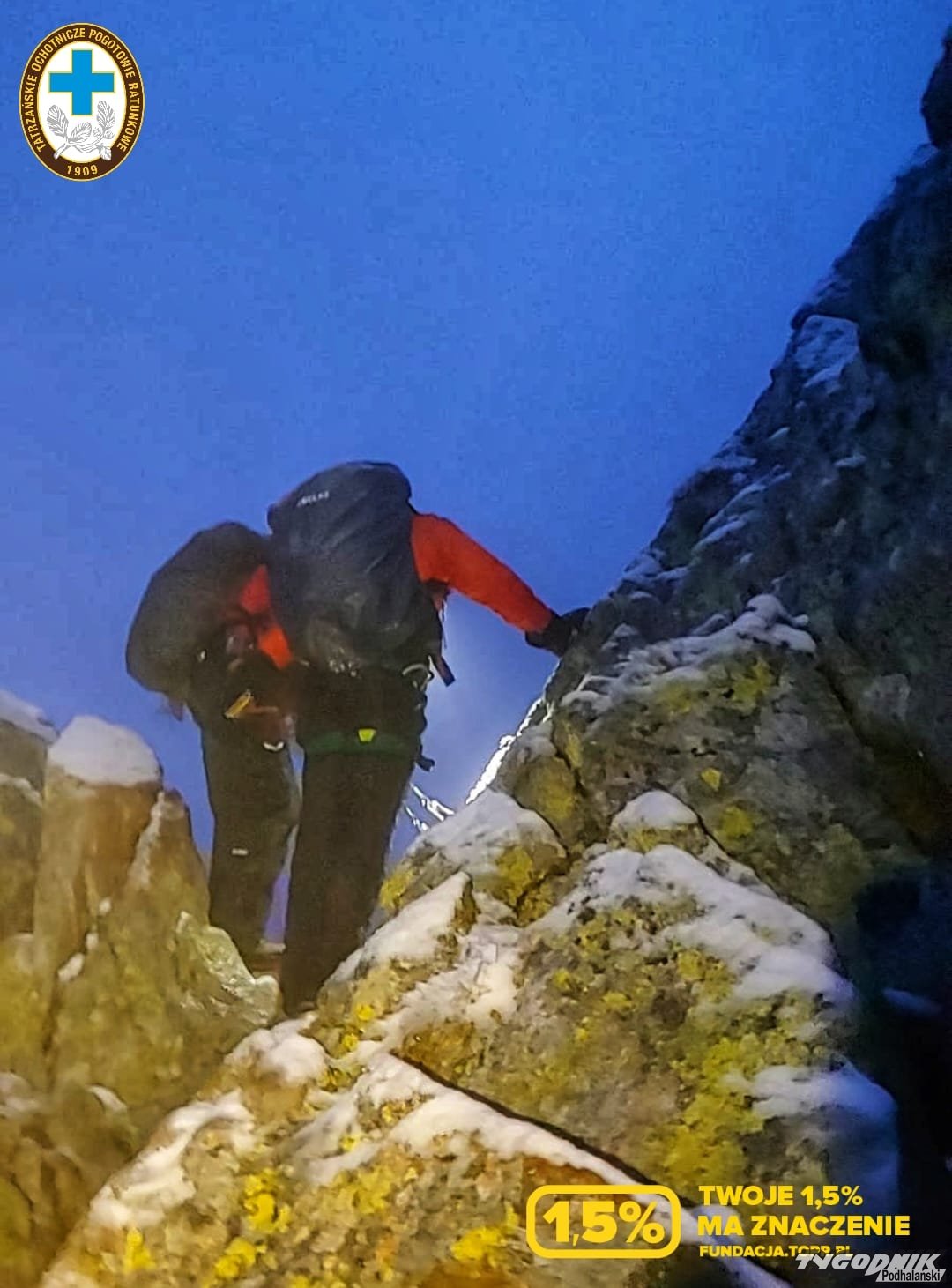 O północy zakończyła się wyprawa ratunkowa po dwóch turystów, którzy w trudnych warunkach utknęli na wierzchołku Świnicy. Ratownicy pomagali też kobiecie, która odpadła od łańcuchów na Rysach.