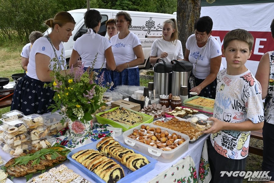 Podsumowując, dzień ten, pomimo krótkotrwałego nawalnego deszczu, okazał się być wielkim festiwalem radości, sąsiedzkich spotkań i przyjacielskiej atmosfery. Przy suto zaopatrzonym stole KGW można było skosztować słodkich smakołyków i przyrządzonych przez panie produktów. Najmłodsi cieszyli się watą cukrową i kolorowymi dmuchańcami. Dorośli zimnym piwkiem i aromatyczną kiełbaską z grilla.