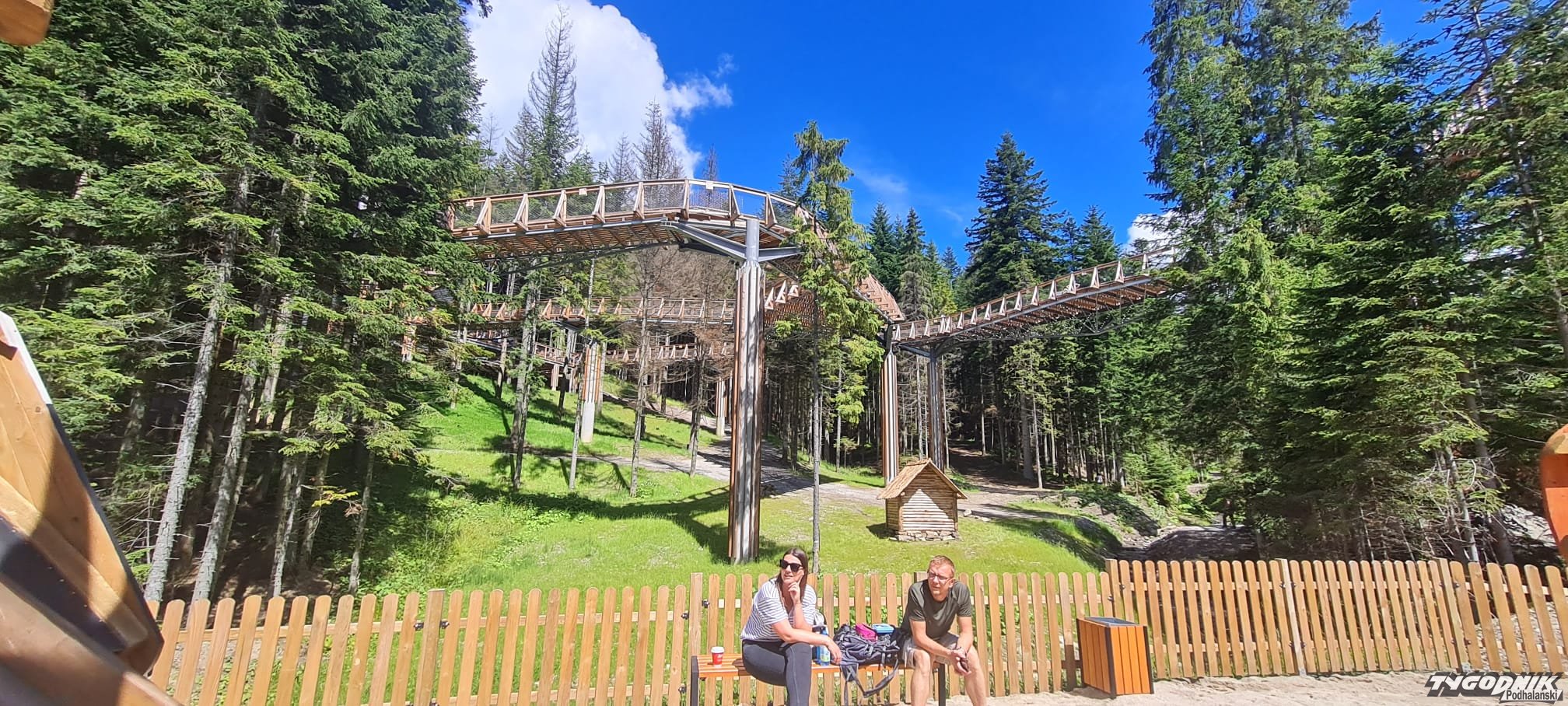 Brama w Gorce z najdłuższą ścieżką w koronach drzew w Polsce okazała się strzałem w dziesiątkę. W ciągu pierwszych trzech miesięcy odwiedziło atrakcję 43 tys. osób. W samym lipcu sprzedano 23 tys. biletów. Dziś pogoda dopisała, wiec turystów było bardzo dużo. - Fajne są wieże i gry w pawilonie edukacyjnych. Ciarki mnie przeszły jak usłyszałam w jaskini niedźwiedzia - mówi Asia z Krakowa. - A mnie najbardziej podobało się to miejsce, gdzie było słychać pszczoły - mówi jej młodsza siostra. Obowiązkowo dziewczynki obfotografowały się w towarzystwie olbrzymich drewnianych zwierzaków. Krystian z Zielonej Góry także zachwycony był wieżą. zapewnia, ze jeszcze tu wróci.