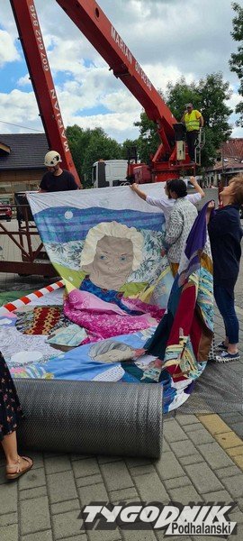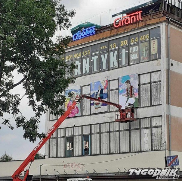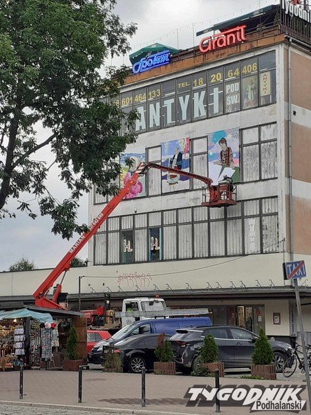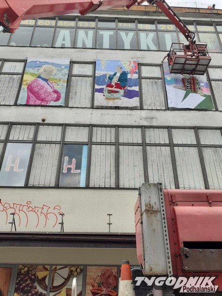 Dom handlowy "Granit" w Zakopanem oklejany jest tkaninami i to nie byle jakimi.