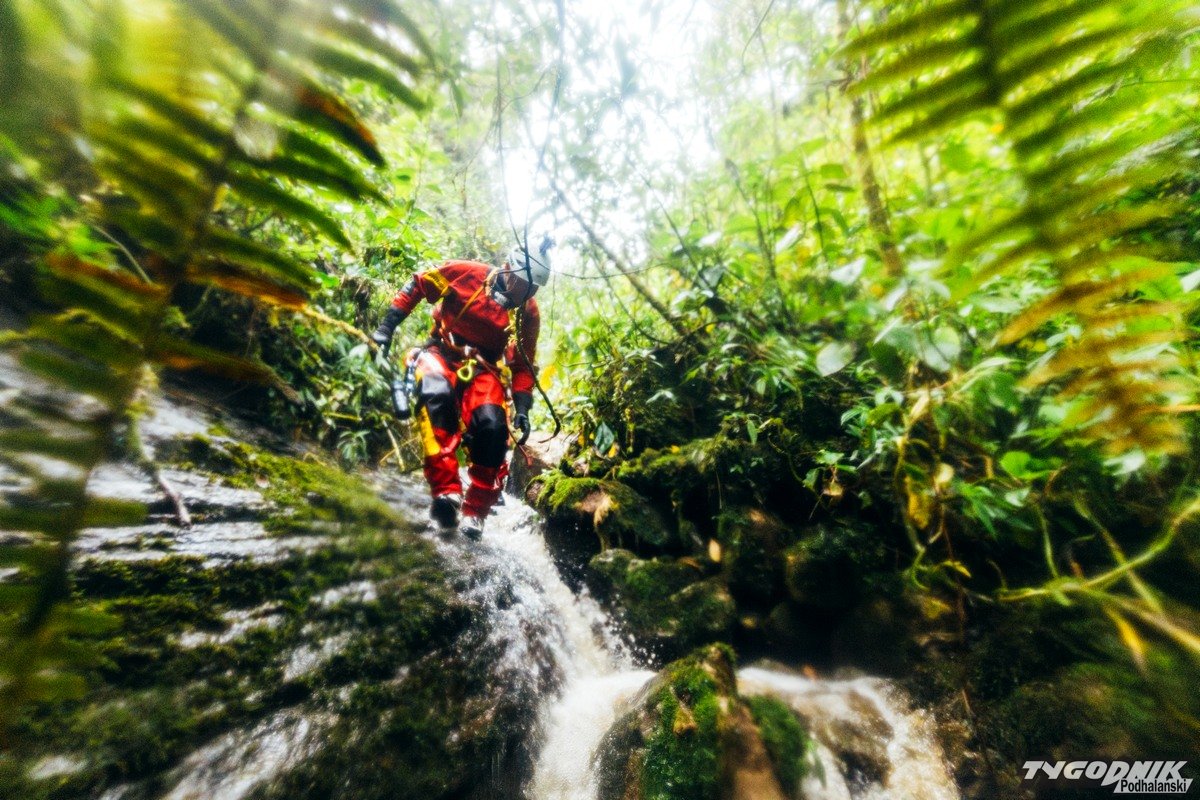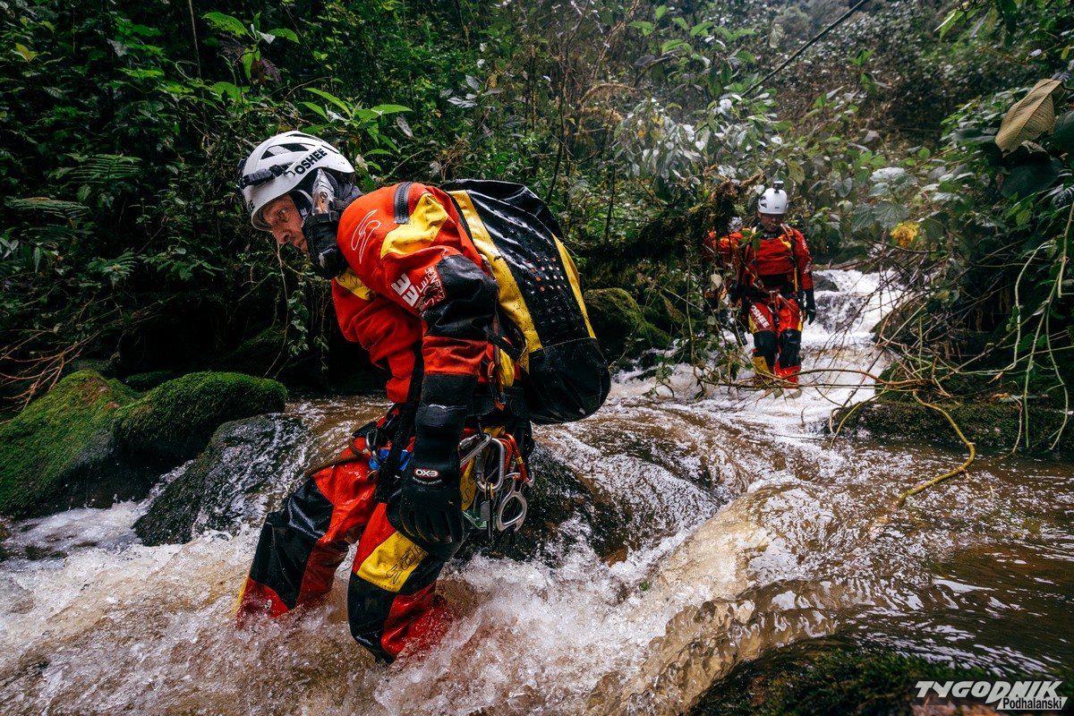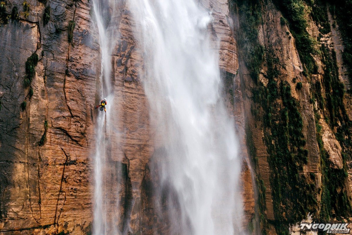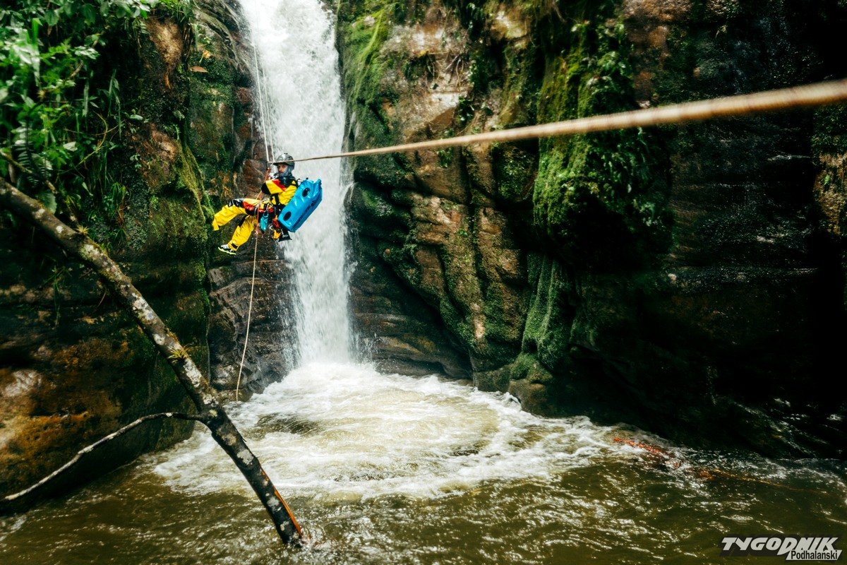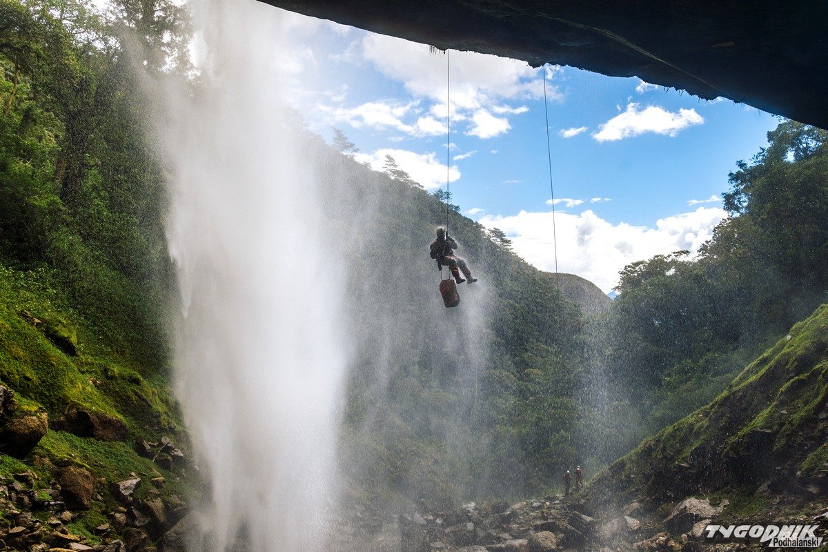 Na tę wyprawę śmiałkowie zmienili kombinezony na tzw."suchary". Sprawdziły się one doskonale, ale i tak start na wysokości 3000 metrów w deszczu i wodzie z wodospadu sprawiał, że pod koniec każdego dnia odczuwali przeraźliwy chłód. Na niesamowitych zdjęciach i filmach widać, jak wchodzili do wody spływającej z wysokich kaskad. - Gdy zanurzamy się w wodospadzie i ściągamy pierwszą linę, to nie ma już odwrotu. Jedyna droga powrotna to zejście w dół i zrealizowanie planu. Nie ma tam służb ratunkowych. Nie zadzwonimy do TOPR-u po pomoc - dodaje Wierzejski.