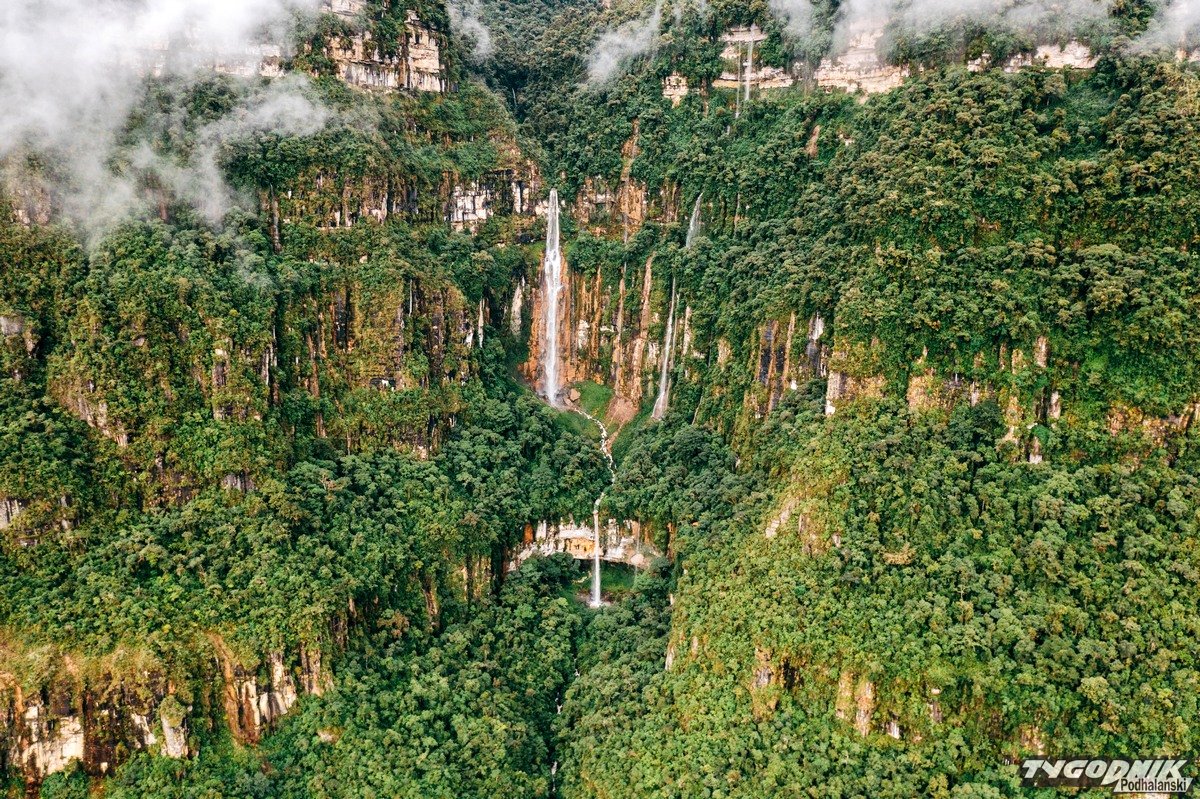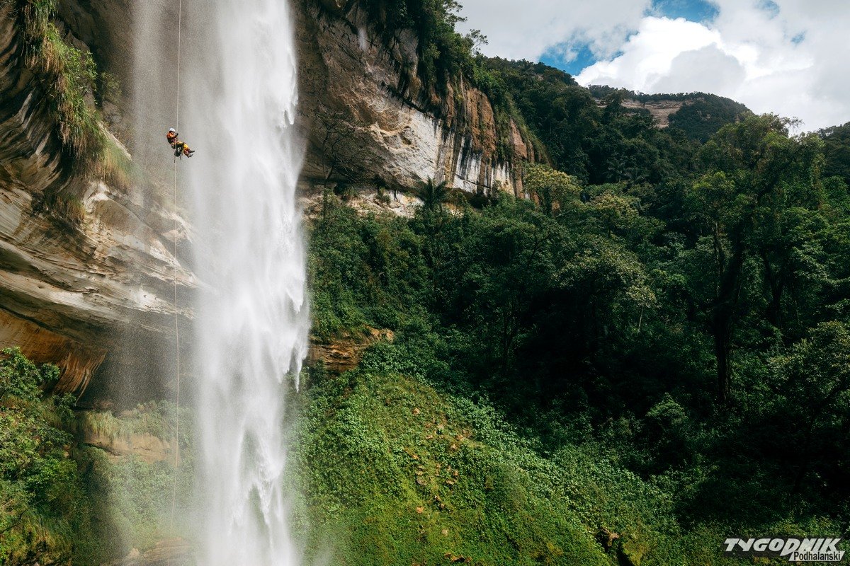 - W tych wodospadach, które zrobiliśmy wcześniej, były bardzo długie kaskady, sięgające nawet kilometra. Tam wejście do wody oznaczałoby po prostu upadek w dół, z taką siłą spada w nich woda. W przypadku Yumbilla Falls tych kaskad jest więcej, co pozwala na wprowadzenie zjazdu, jakiego doświadczamy, uprawiając canyoning. Po prostu częściej wchodziliśmy do wody - wspomina Wierzejski.