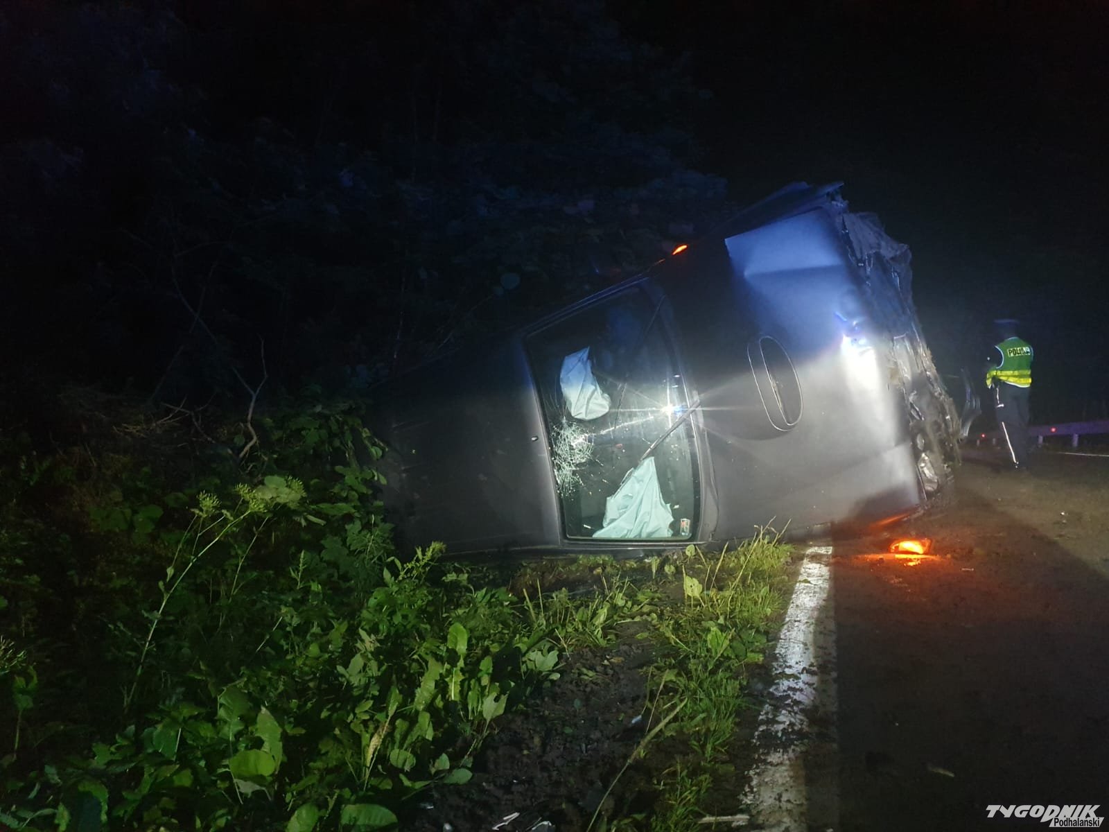 Auto terenowe wywróciło się na bok.