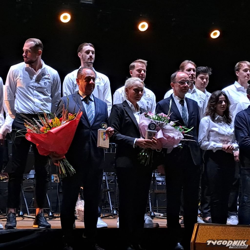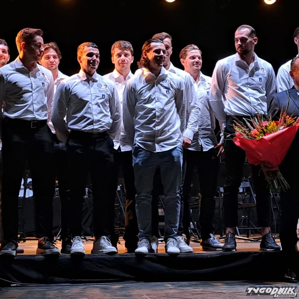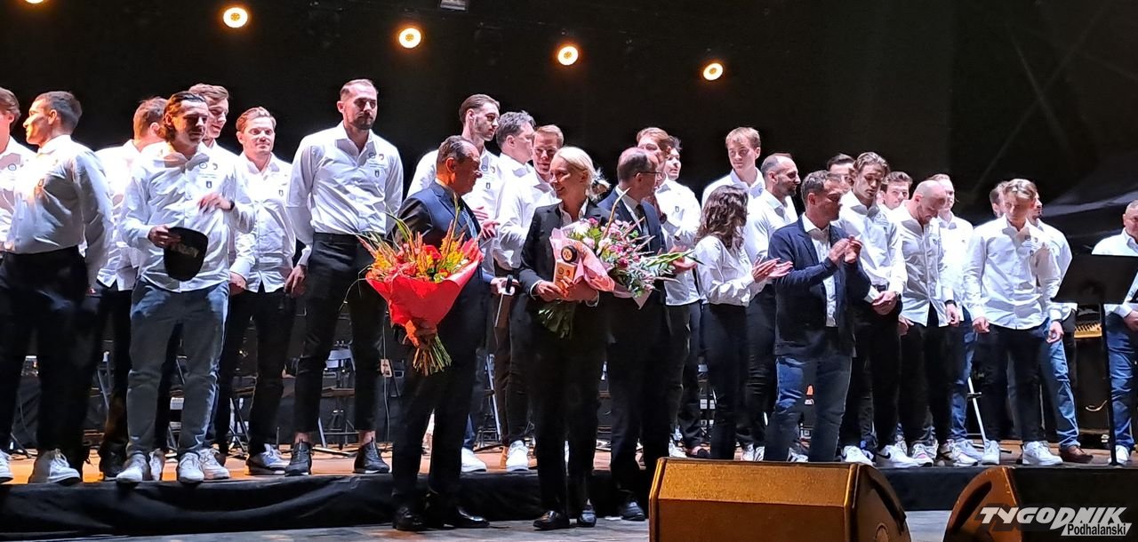 Na scenie pojawili się nawet wszyscy zawodnicy "Szarotek" i dziękowali przedstawicielce PZU za podjętą decyzję. Głos zabrał także poseł i minister Andrzej Gut Mostowy. - Sponsor tytularny pozwoli na trwałą pracę i trud, który zapewne przyniesie efekty. Tego wam życzę, tego oczekują kibice. Nowy Targ znowu będzie stolicą polskiego hokeja - mówił Andrzej Gut Mostowy.