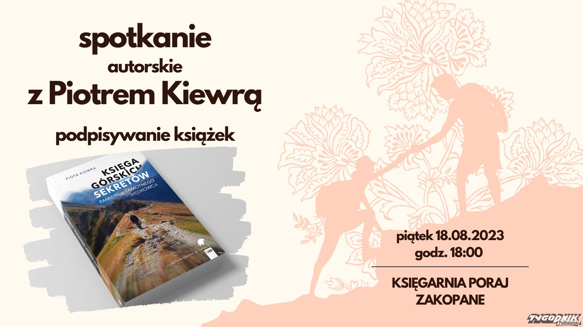 W piątek 18.08 w zakopiańskiej księgarni Poraj przy ul. Krupówki 50 zagości Piotr Kiewra, autor książki "Księga górskich sekretów".