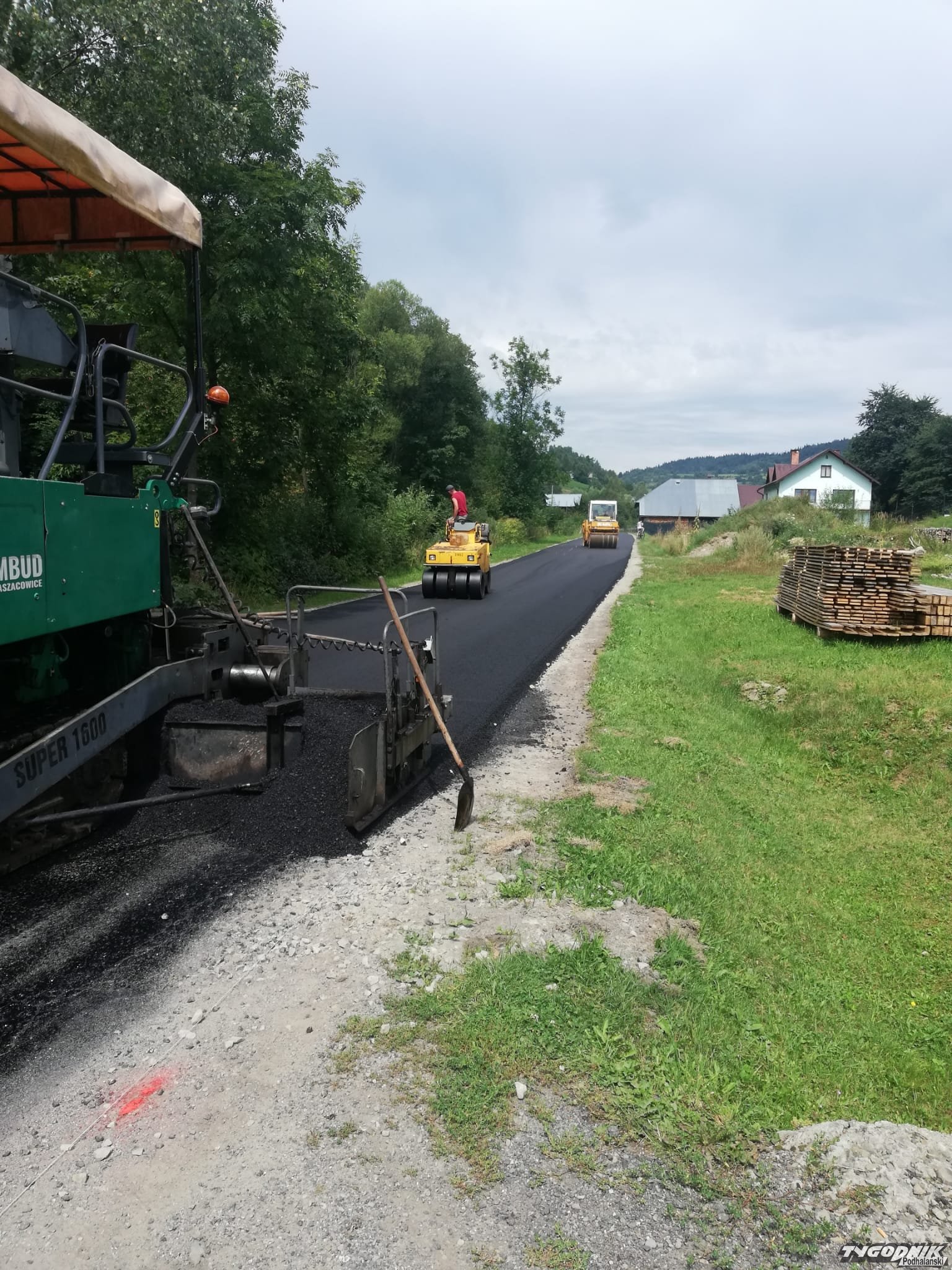 Drogowcy asfaltują kolejny odcinek drogi głównej.