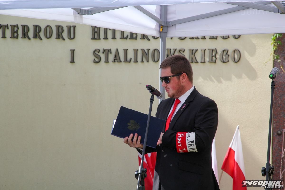 - Od lat apeluję do władz o spowodowanie zmiany tego napisu. Przecież to jest relikt komuny. Pamiętam jak ten napis pojawił się na tej ścianie w 2014 roku w 75 rocznicę wybuchu II Wojny Światowej. Wówczas go wychwalano i bito brawa. Dzisiaj nadszedł czas, by zmienić ten fałsz historyczny, jest czas na poprawność historyczną, która nakazuje następującą treść: "Pamięci ofiar terroru niemieckiego i sowieckiego" - zaapelował Tadeusz Morawa.