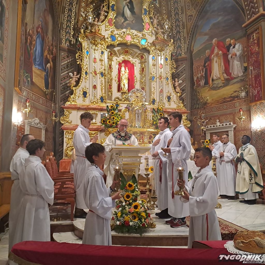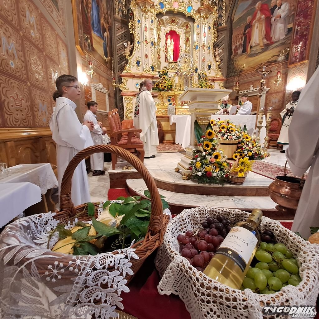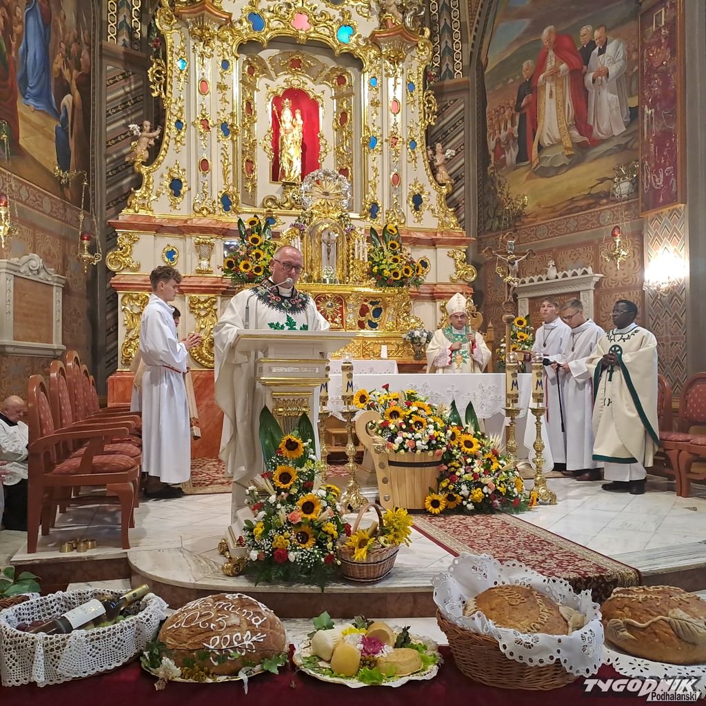Warunki pogodowe zmusiły organizatorów do zmiany miejsca uroczystości. Zamiast przy ołtarzu polowym w Maryjnym Ogrodzie Różańcowym, Msza św. została odprawiona w bazylice mniejszej. - Dziękujemy Bogu za wszystko czym nas obdarza. Dziękujemy za obfitości, ale i niedostatki, za pomyślność i porażki. W oczach świata takie dziękczynienie wydaje się dziwne. Dziękować, za coś co po ludzku nie wyszło, nie udało się. Dziękować, za trudne doświadczenie? Jak to? Co mają powiedzieć rolnicy, którzy tego roku utracili plon, nie otrzymali tego o co prosili - podkreślał bp Robert Chrząszcz.