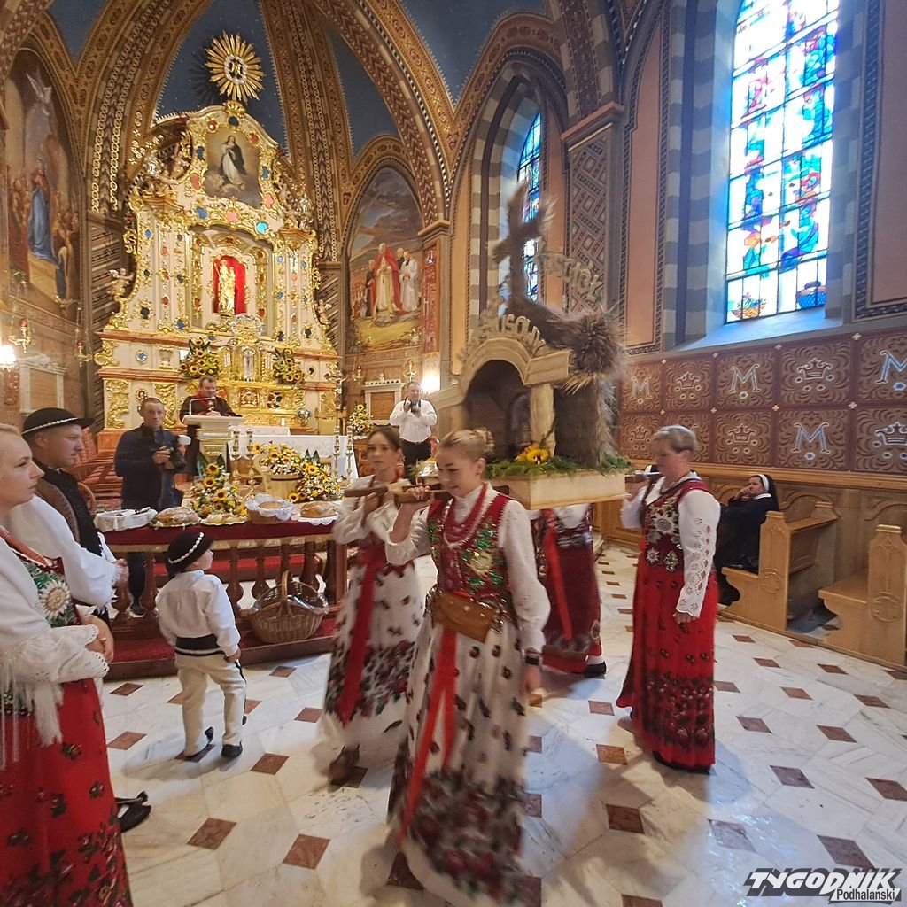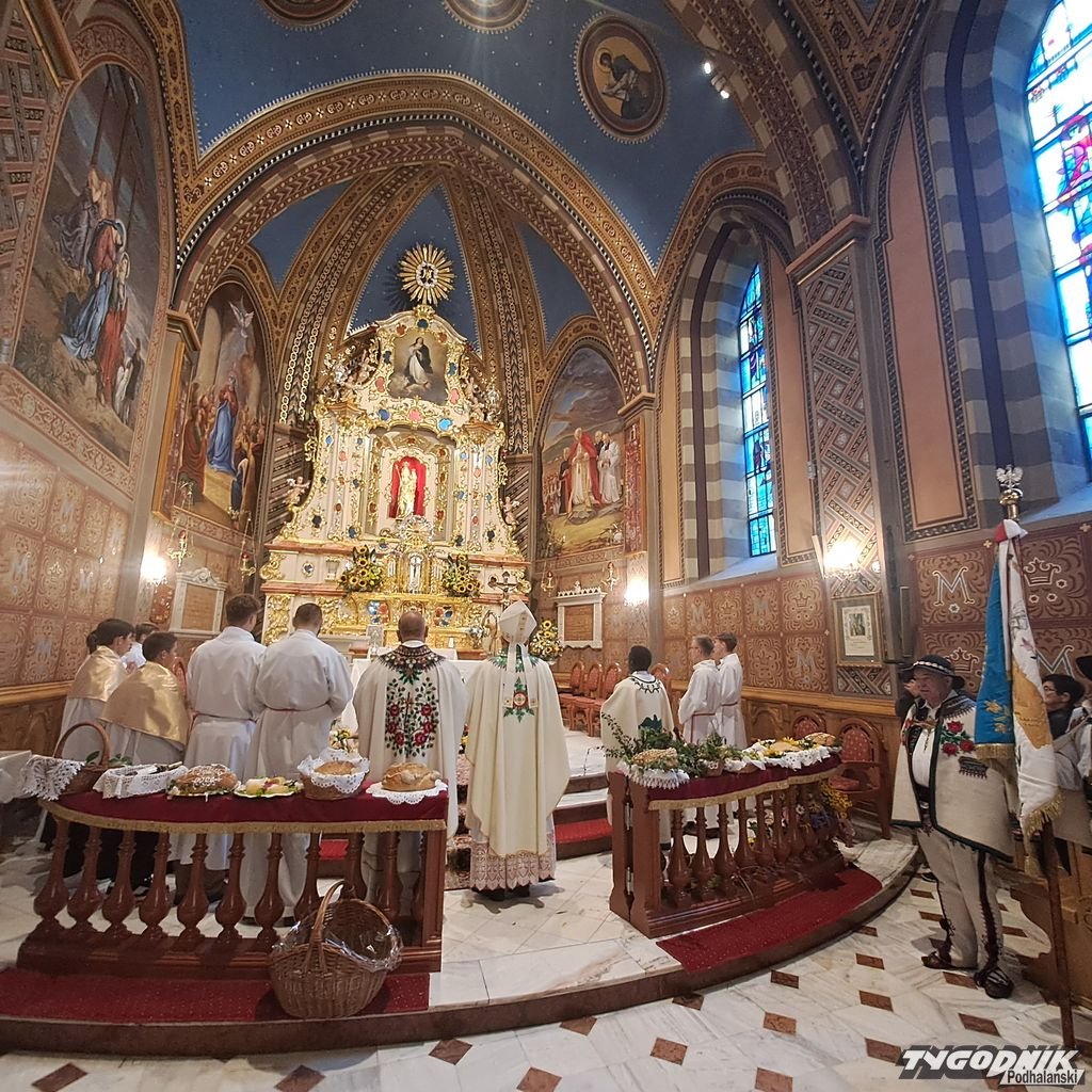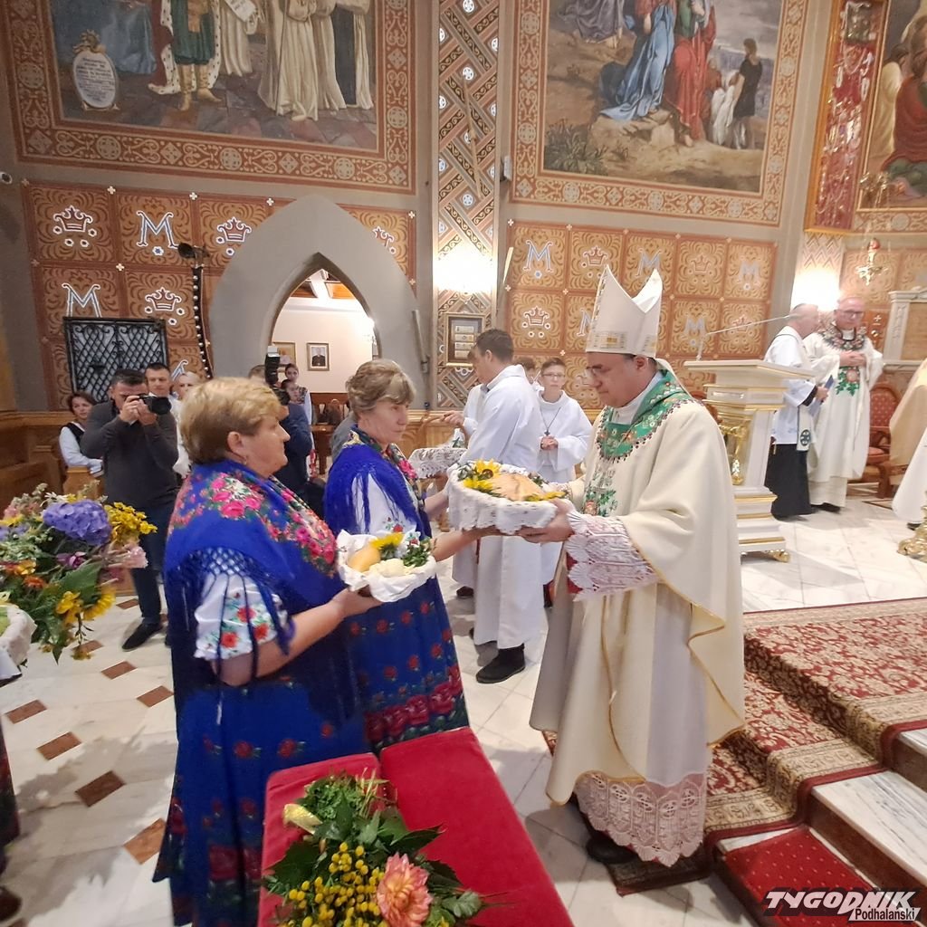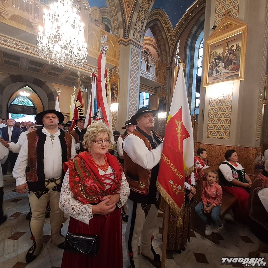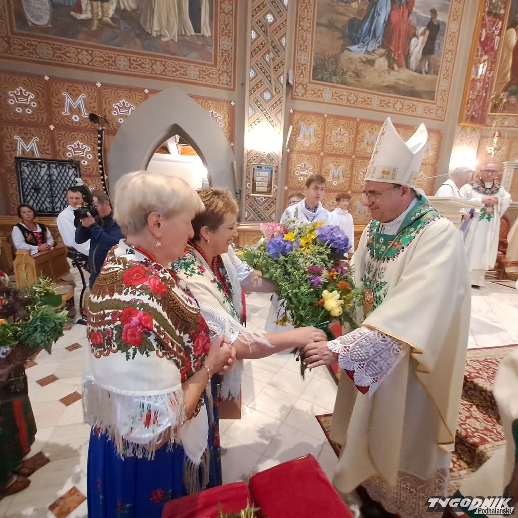 Uczestników Dożynek Podhalańskich pozdrowił ks. Maciej Ścibor, kustosz ludźmierskiego sanktuarium, a bp Robert Chrząszcz poświęcił żyto na zasiew. Podczas procesji z darami przyjął od delegacji m.in. chleby dożynkowe i produkty regionalne.