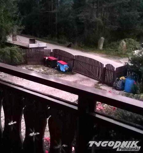 Niedźwiedź przychodzi na posesję przy stadionie biathlonowym i dewastuje ule.