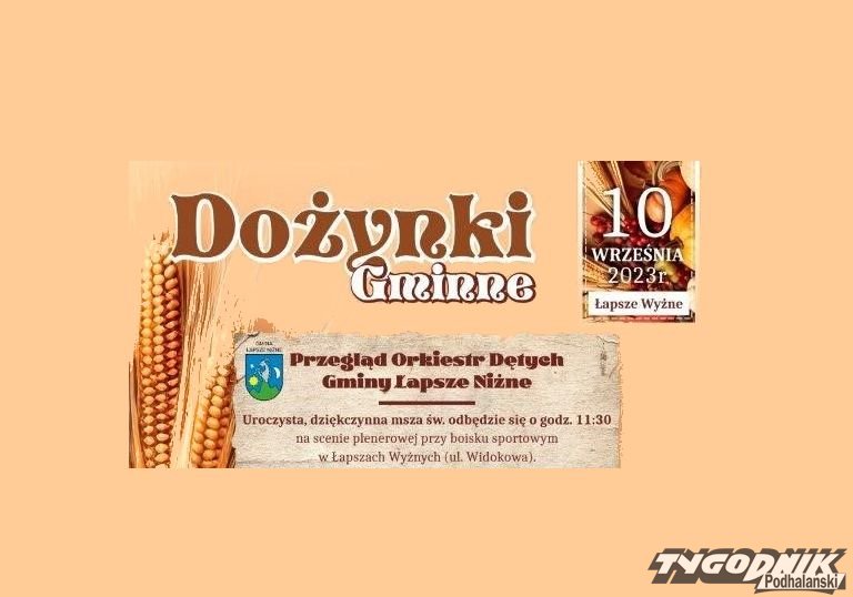 W niedzielę 10.09 zapraszamy do Łapsz Niżnych na Gminne Dożynki i Przegląd Orkiestr Dętych.