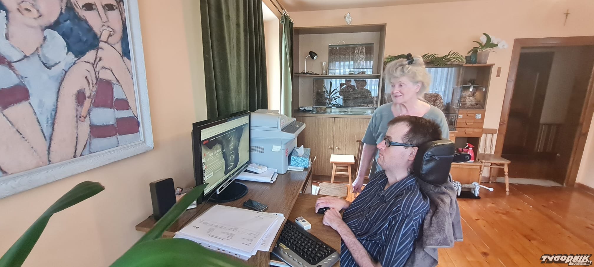 Tłumaczem podczas naszej rozmowy jest mama Pawła - Ewa. Ona też głównie pomaga w prowadzeniu prężnie działającej dziś organizacji. Odbiera paczki ze sprzętem, który potem trzeba wysłać do chorych. Panuje nad teczkami z dokumentacją. Czyści medyczny sprzęt oddany przez rodziny zmarłych, by przekazać go kolejnym. Cały dom już zamienił się w magazyn.