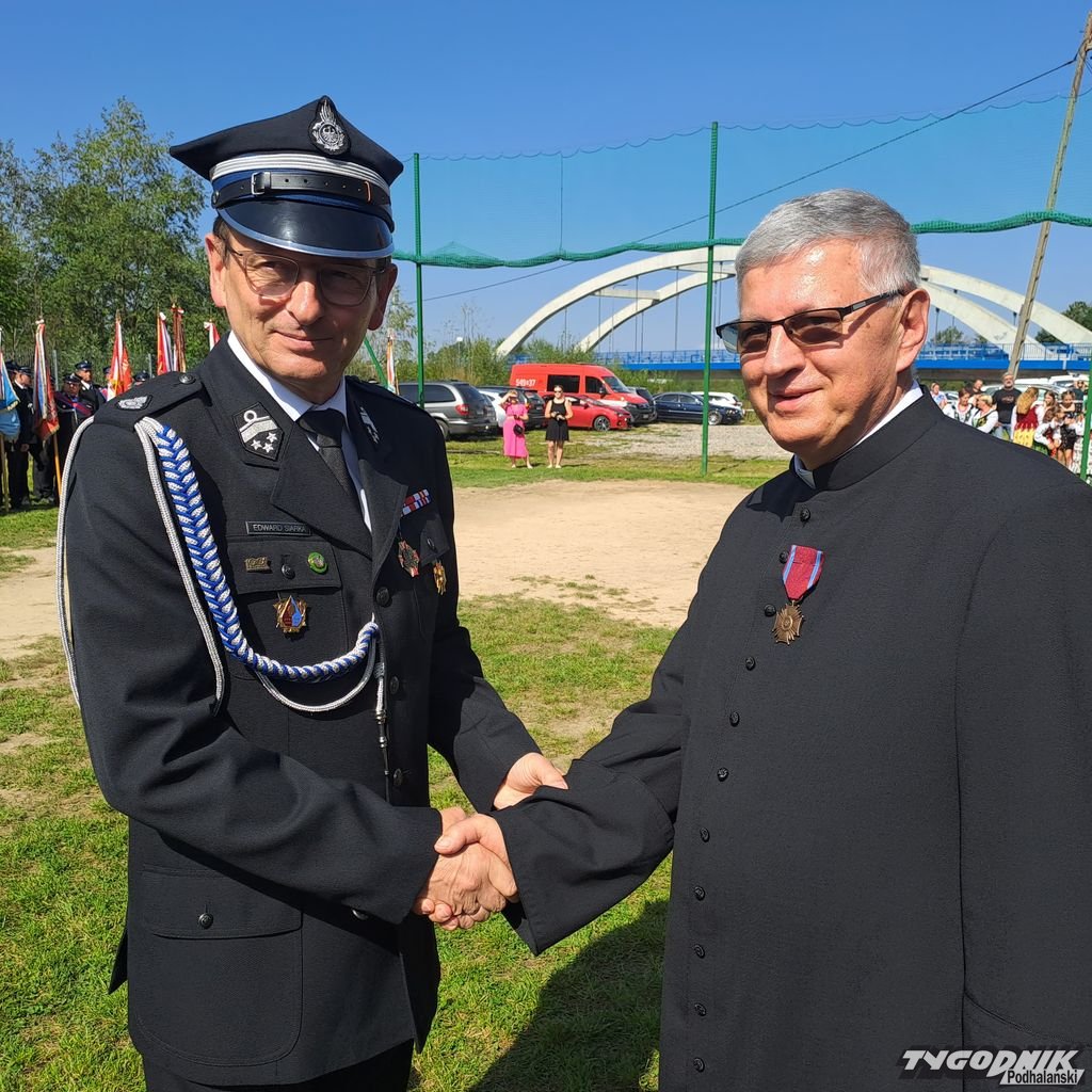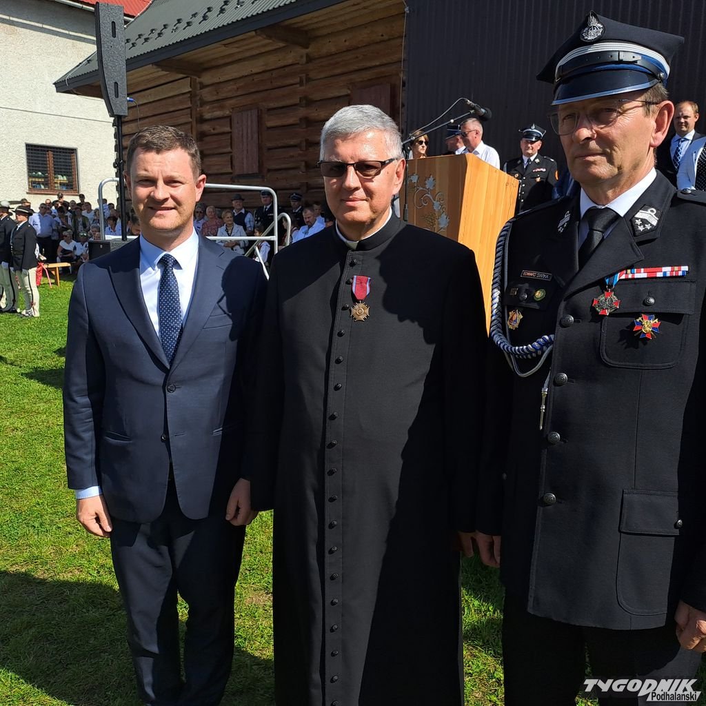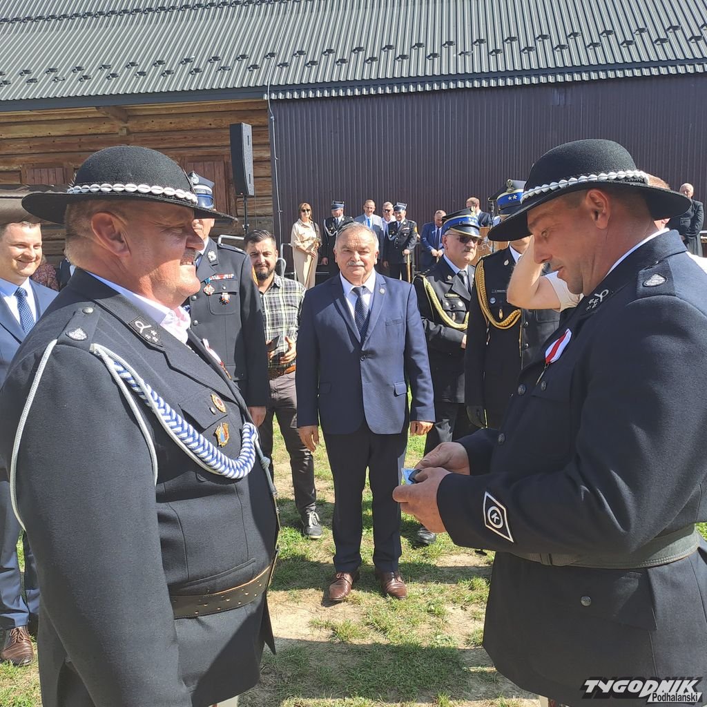 Zanim odezwały się syreny, zanim strażacy odebrali kluczyki, był czas na Mszę św. i odznaczenia. Złotym medalem "za zasługi dla pożarnictwa" zostali odznaczeni: Wojciech Bienias, Tadeusz Leja, Jan Obyrtacz i Kazimierz Sęk. Brązowy medal "za zasługi dla pożarnictwa" odebrali: Augustyn Haberny, Stanisław Haberny, Tadeusz Haberny, Franciszek Haberny, Kazimierz Sęk, Edward Wojtaszek, Mateusz Zięba.