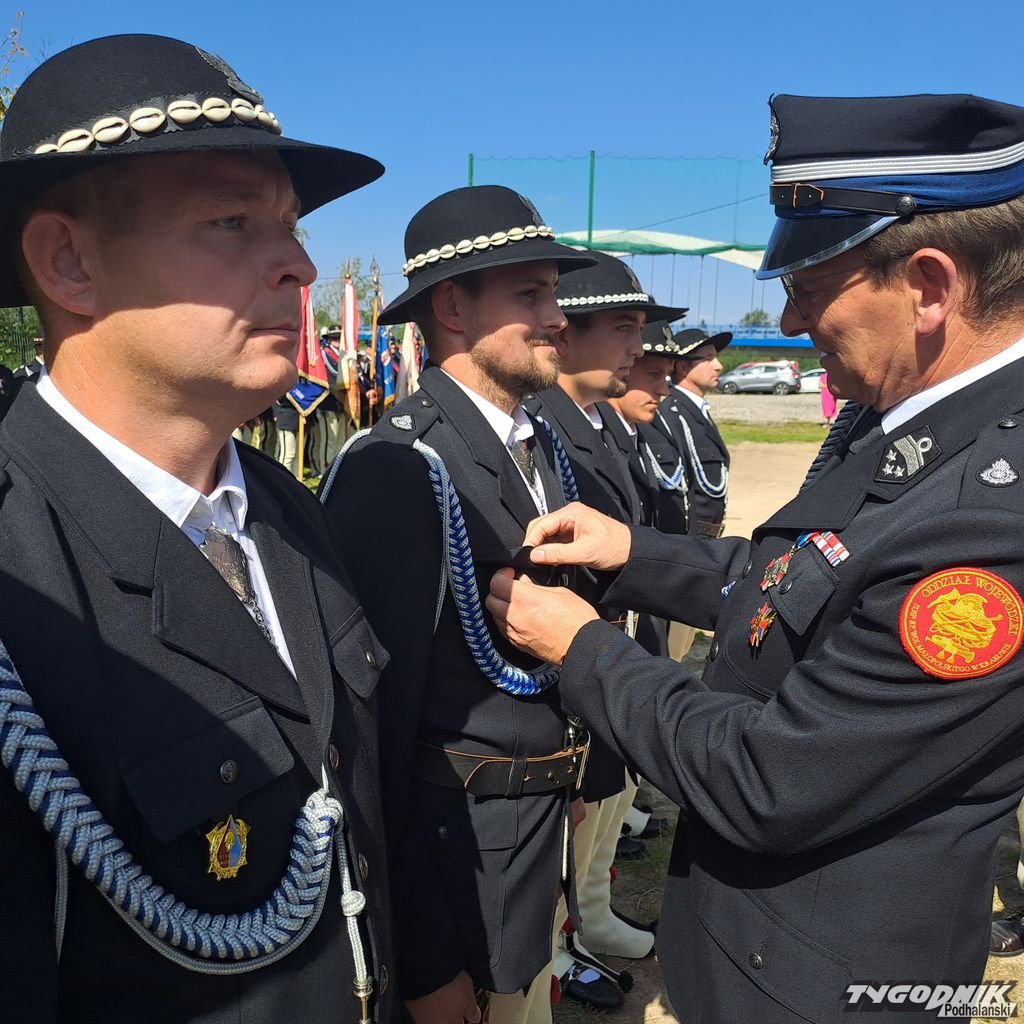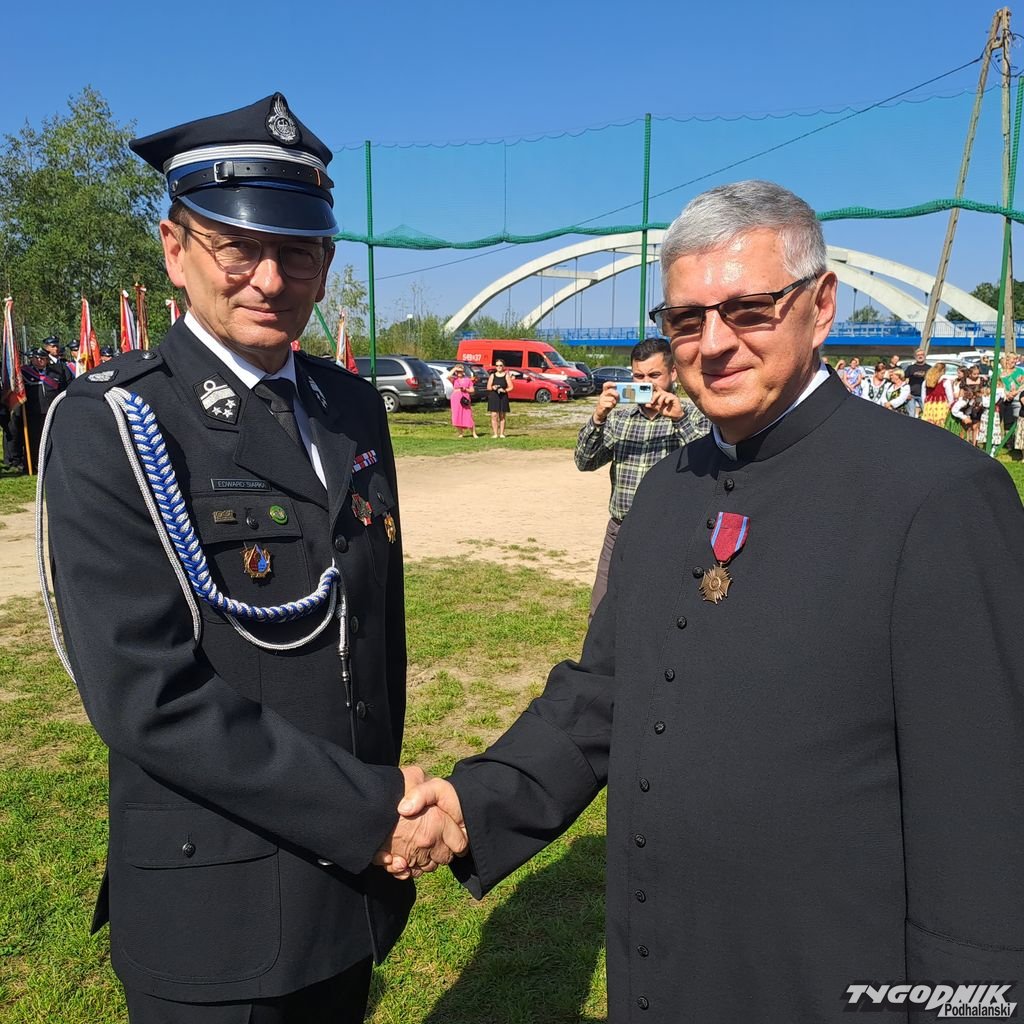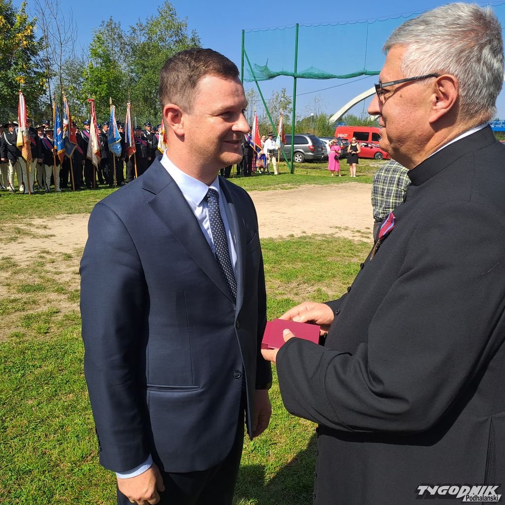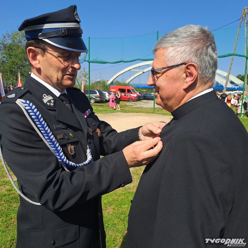 Zanim odezwały się syreny, zanim strażacy odebrali kluczyki, był czas na Mszę św. i odznaczenia. Złotym medalem "za zasługi dla pożarnictwa" zostali odznaczeni: Wojciech Bienias, Tadeusz Leja, Jan Obyrtacz i Kazimierz Sęk. Brązowy medal "za zasługi dla pożarnictwa" odebrali: Augustyn Haberny, Stanisław Haberny, Tadeusz Haberny, Franciszek Haberny, Kazimierz Sęk, Edward Wojtaszek, Mateusz Zięba.
