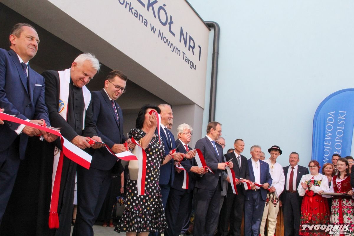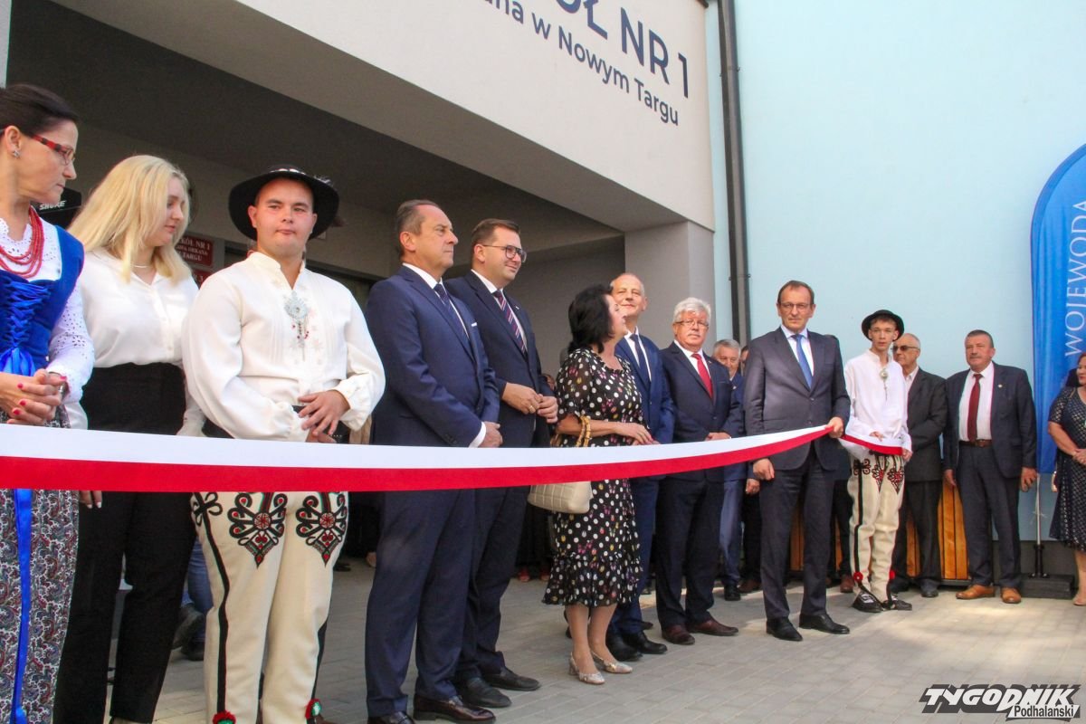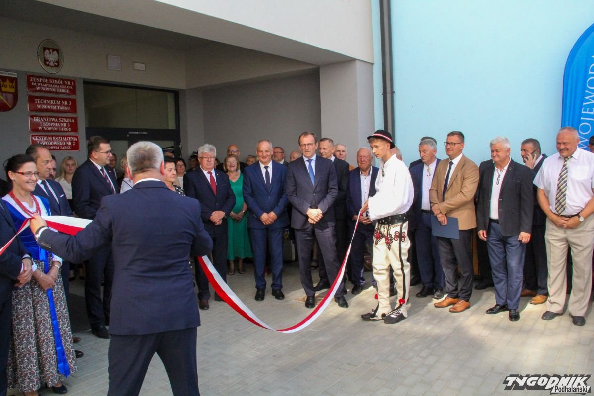 Młodzież co prawda uczy się tu od tygodnia, ale dopiero na dziś udało się uzgodnić odpowiedni termin hucznego otwarcia. A do Nowego Targu zjechali politycy PiS - Anna Paluch, Andrzej Gut - Mostowy oraz Edward Siarka z Suwerennej Polski czyli koalicjanci na wspólnej liście wyborczej. Z nożyczkami w ręku dopchał się też kolejny kandydat rządzącej koalicji - Bogdan Pęk. W jednym szeregu ustawił się też marszałek województwa Łukasz Kmita i lokalni oficjele ze starostą Krzysztofem Faberem na czele.