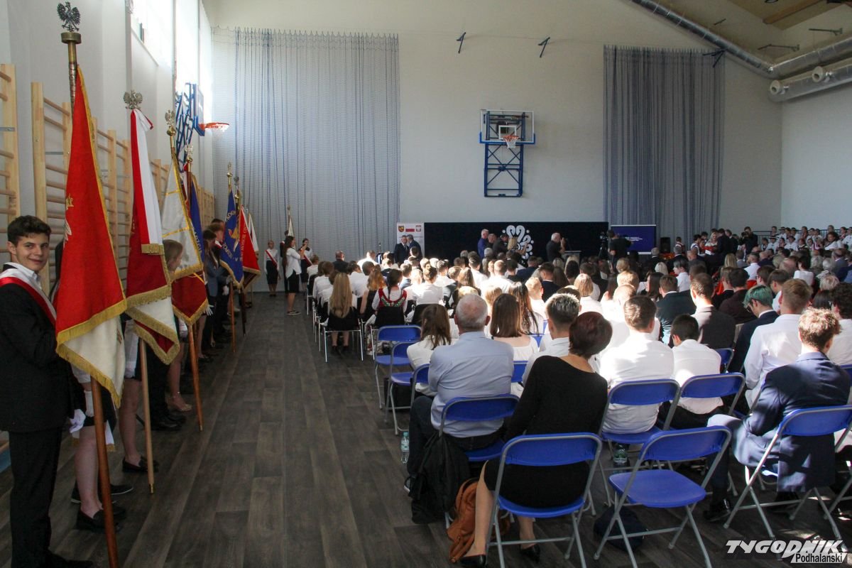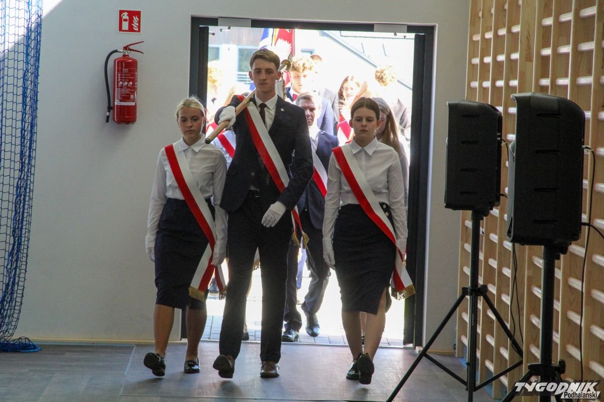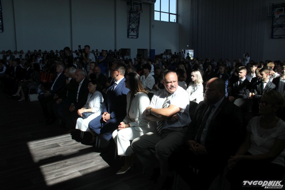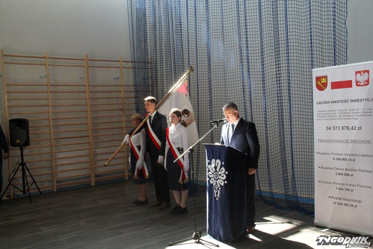 Młodzież co prawda uczy się tu od tygodnia, ale dopiero na dziś udało się uzgodnić odpowiedni termin hucznego otwarcia. A do Nowego Targu zjechali politycy PiS - Anna Paluch, Andrzej Gut - Mostowy oraz Edward Siarka z Suwerennej Polski czyli koalicjanci na wspólnej liście wyborczej. Z nożyczkami w ręku dopchał się też kolejny kandydat rządzącej koalicji - Bogdan Pęk. W jednym szeregu ustawił się też marszałek województwa Łukasz Kmita i lokalni oficjele ze starostą Krzysztofem Faberem na czele.