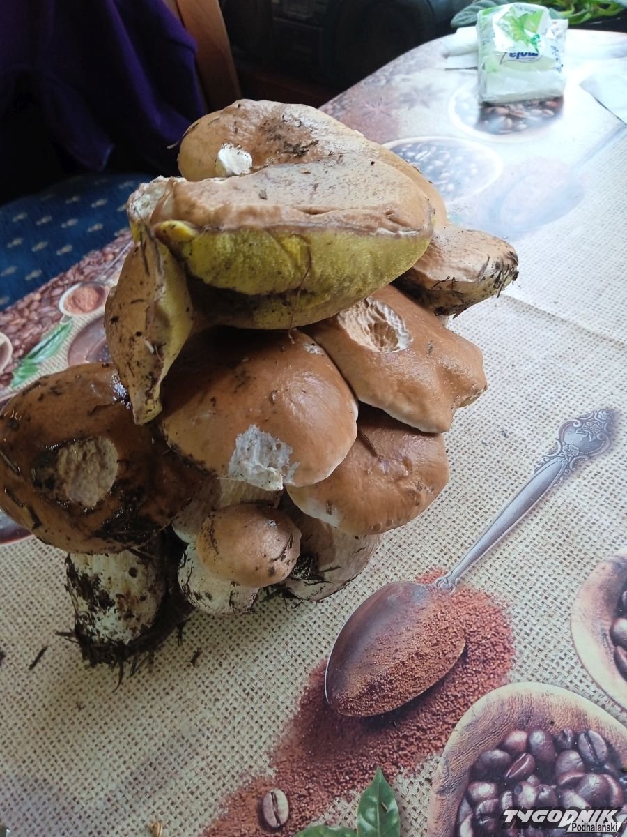 Mieszkaniec Wysokiej koło Jordanowa podczas dzisiejszego grzybobrania natrafił na nietypowe znalezisko. To cała kępa jedenastu prawdziwków rosnących niemal jeden na drugim.