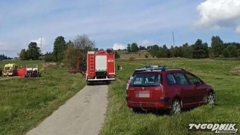 Wypadek zdarzył się po 13, na terenie polnym w Dziale. Z pierwszych ustaleń policji wynika, że podczas prac polowych, 72-letni mężczyzna wpadł pod koła ciągnika rolniczego. Poszkodowany jest w bardzo ciężkim stanie. Na miejscu lądował śmigłowiec Lotniczego Pogotowia Ratunkowego, który zabrał 72-latka do szpitala. Miejsce wypadku zabezpieczają strażacy. - Na miejscu zdarzenia policjanci ruchu drogowego ustalają okoliczności wypadku - podsumowuje podkom. Dorota Garbacz z nowotarskiej policji.