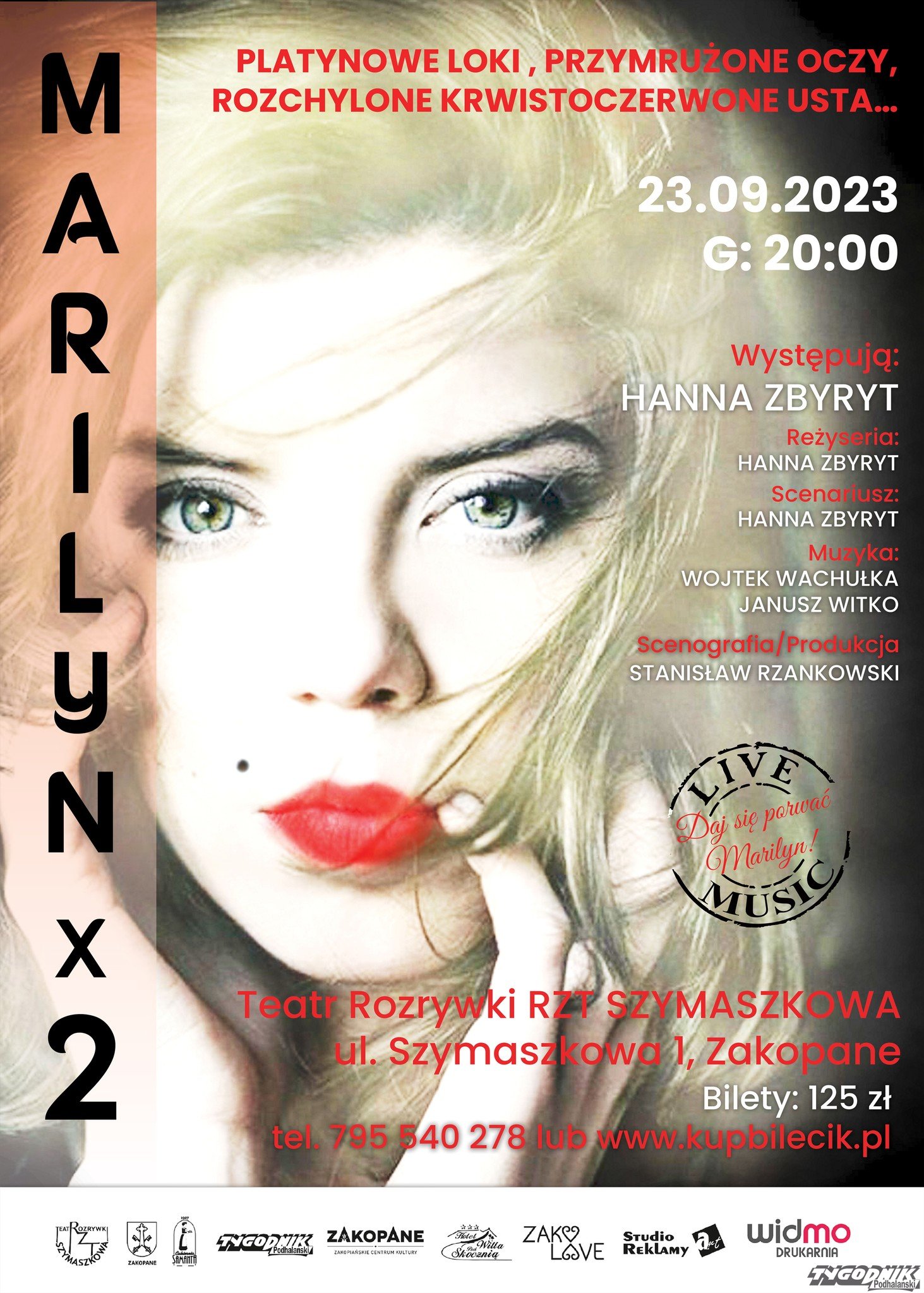 Na hollywoodzki wieczór z gwiazdą Marylin Monroe w sobotę 23.09 zaprasza Teatr Rozrywki RZT Szymaszkowa w Zakopanem (ul. Szymaszkowa 1).