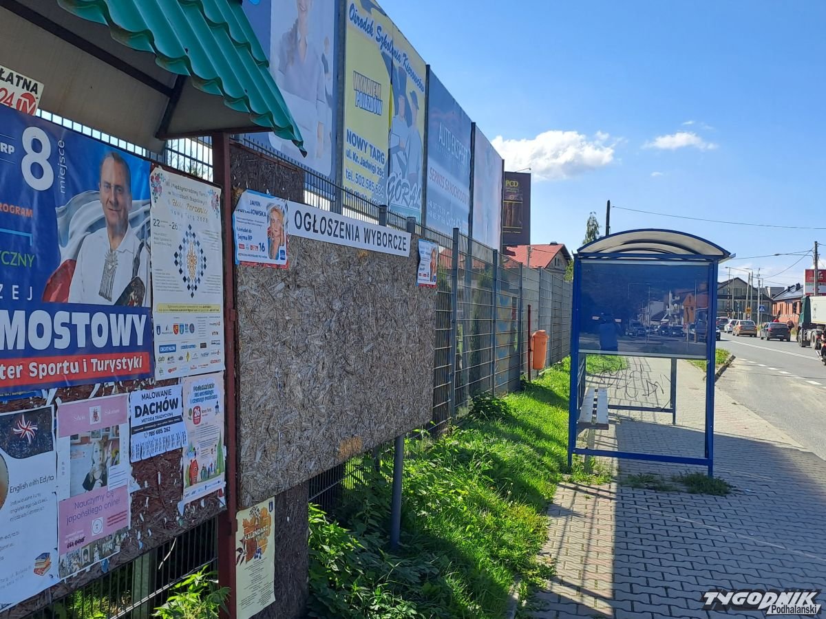 Na przystankach, tuż obok tabliczek z zakazem umieszczenia reklam, zawisły wyborcze plakaty.