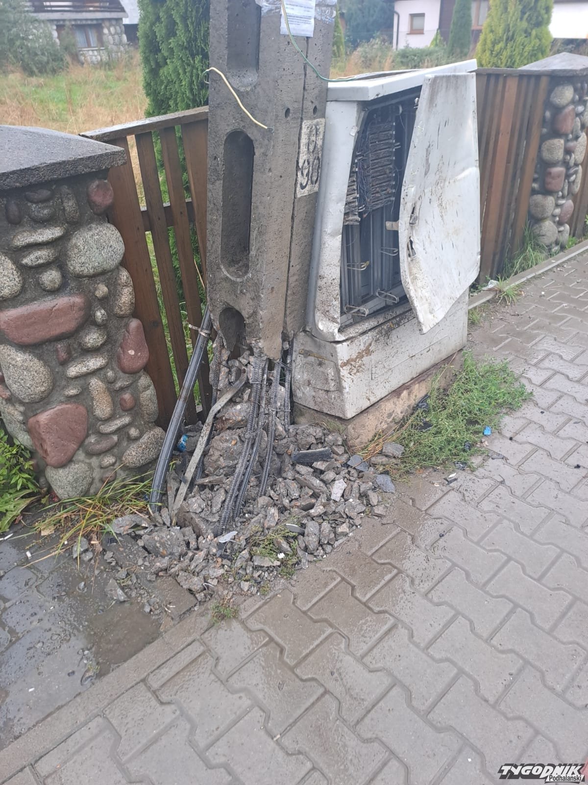 Poważna stłuczka w Białce Tatrzańskiej. Uszkodzony słup