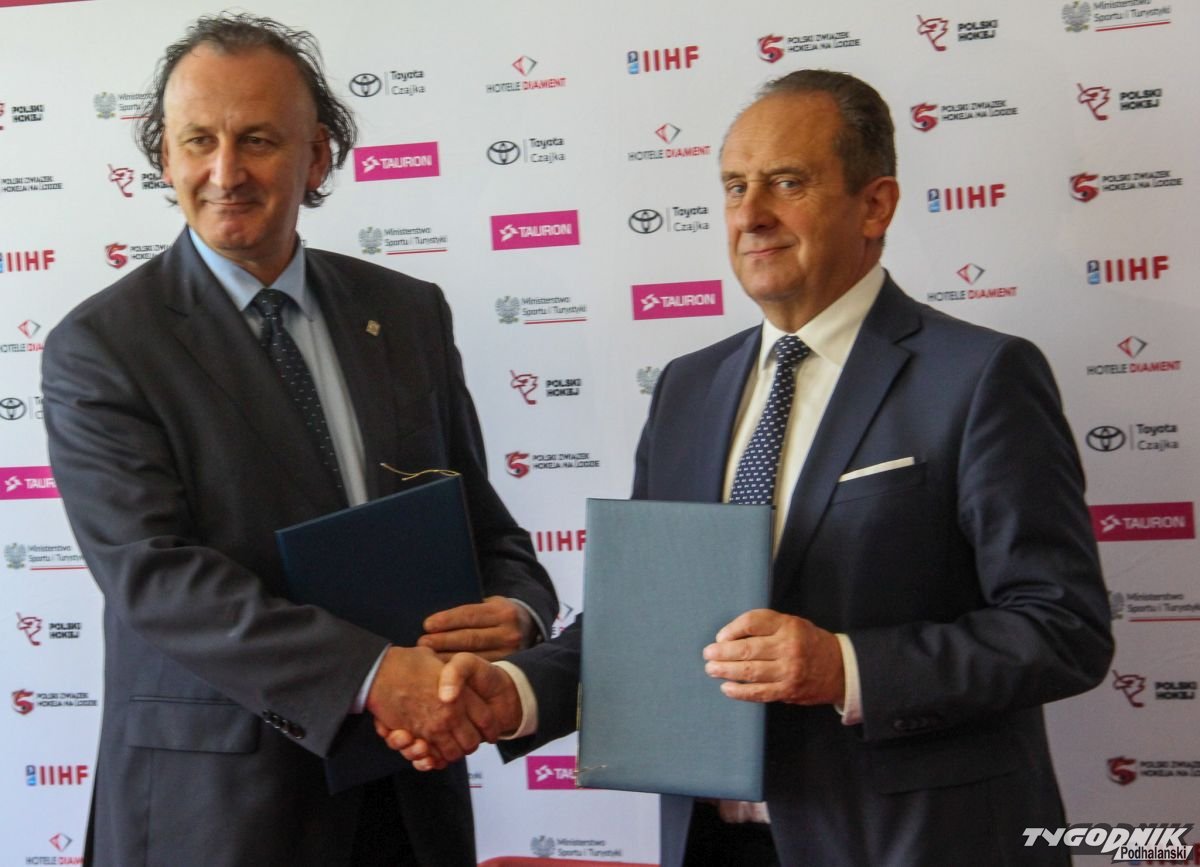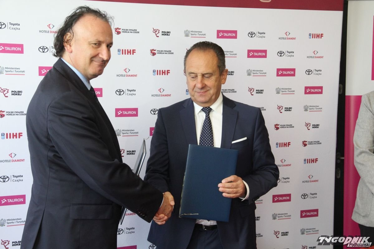 Andrzej Gut-Mostowy podpisał umowę. Byłoby sympatycznie i z pompą, gdyby nie pytania od dziennikarza o... zrzutkę.