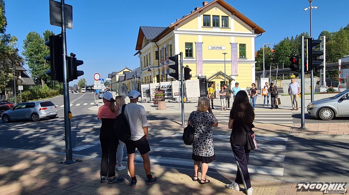 Piesi muszą bardzo długo czekać na przejście przez pasy przy dworcu autobusowym w Zakopanem.