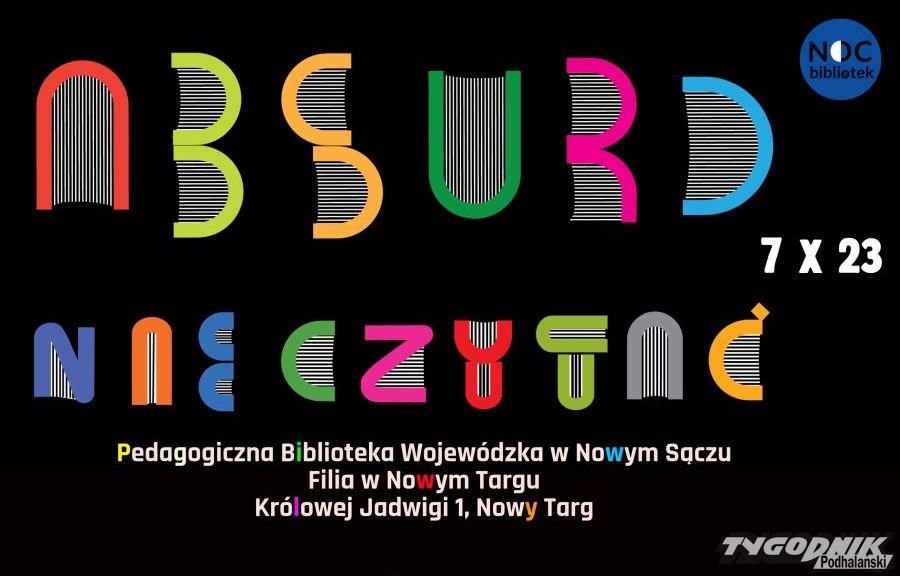 Pedagogiczna Biblioteka Wojewódzka w Nowym Sączu, filia w Nowym Targu prezentuje program IX odsłony Ogólnopolskiej Nocy Bibliotek. Impreza odbędzie się w najbliższą sobotę 7.10 w godzinach od 16.30 do 23.