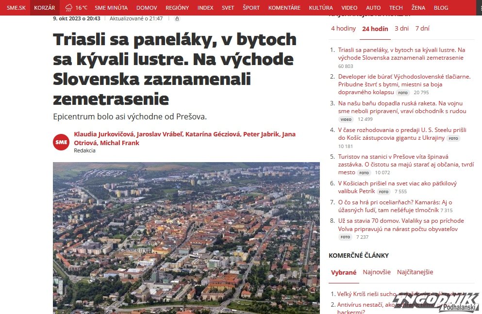Jak informują słowackie media, we wschodniej Słowacji doszło wieczorem do trzęsienia ziemi. Miało 5,0 w skali Richtera. Wstrząsy były też odczuwalne w Nowym Sączu.