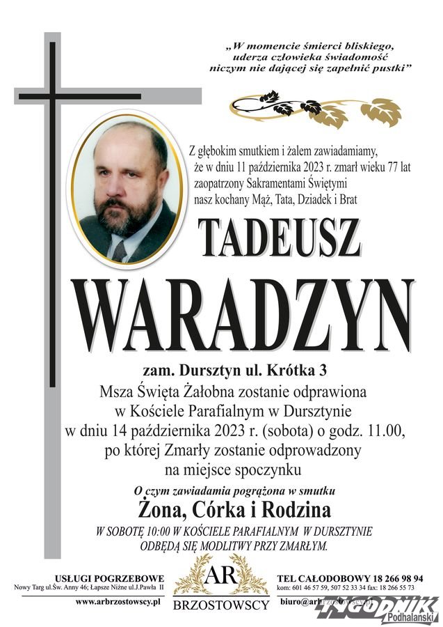 Nie żyje Tadeusz Waradzyn - terapeuta i działacz trzeźwościowy